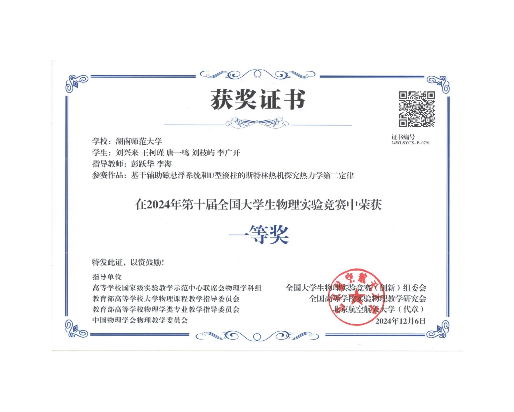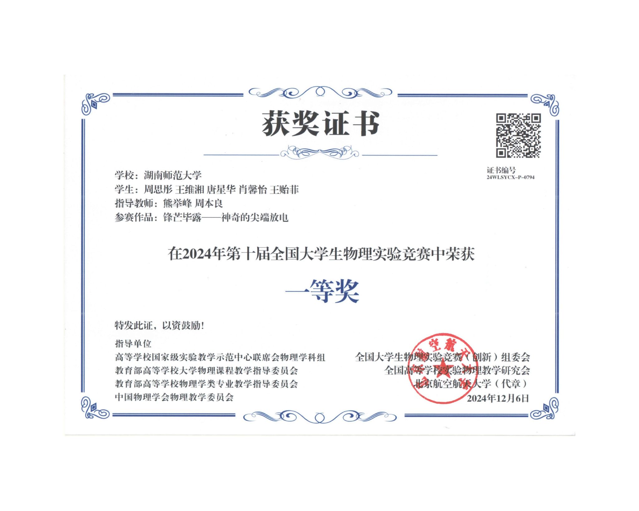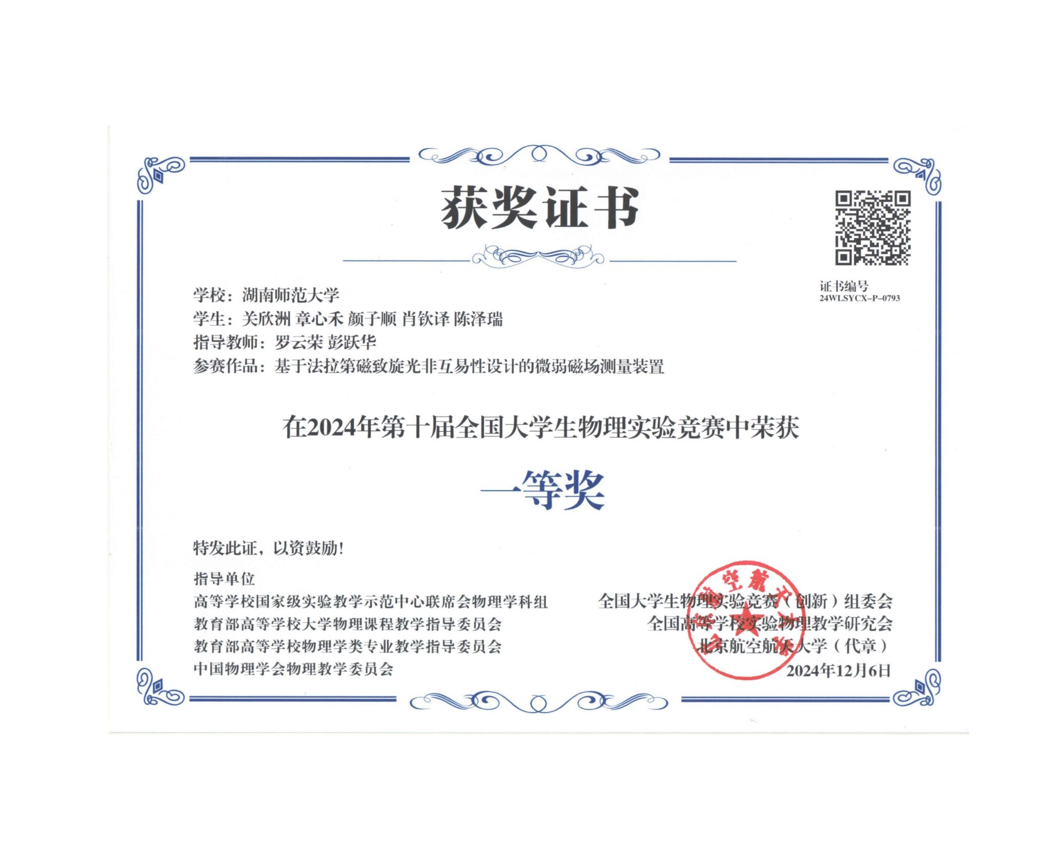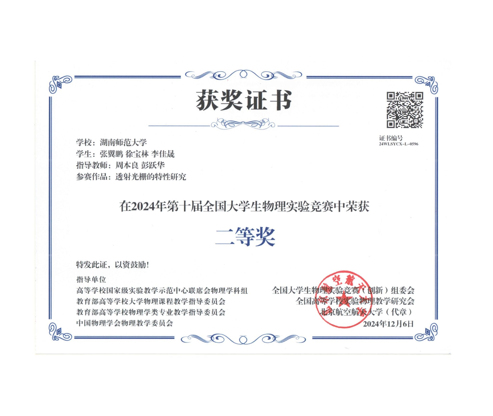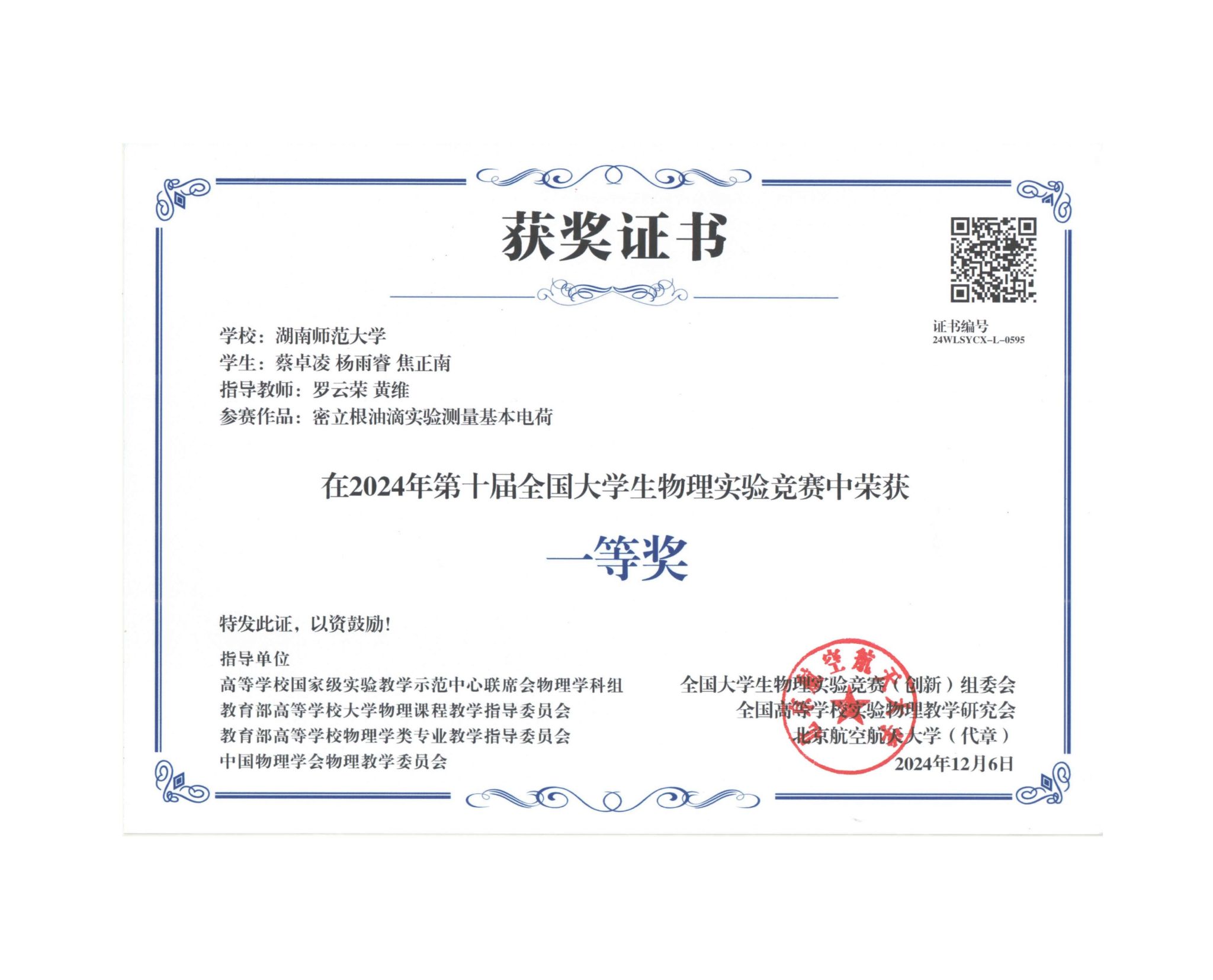 2024年第十届全国大学生物理实验竞赛获奖