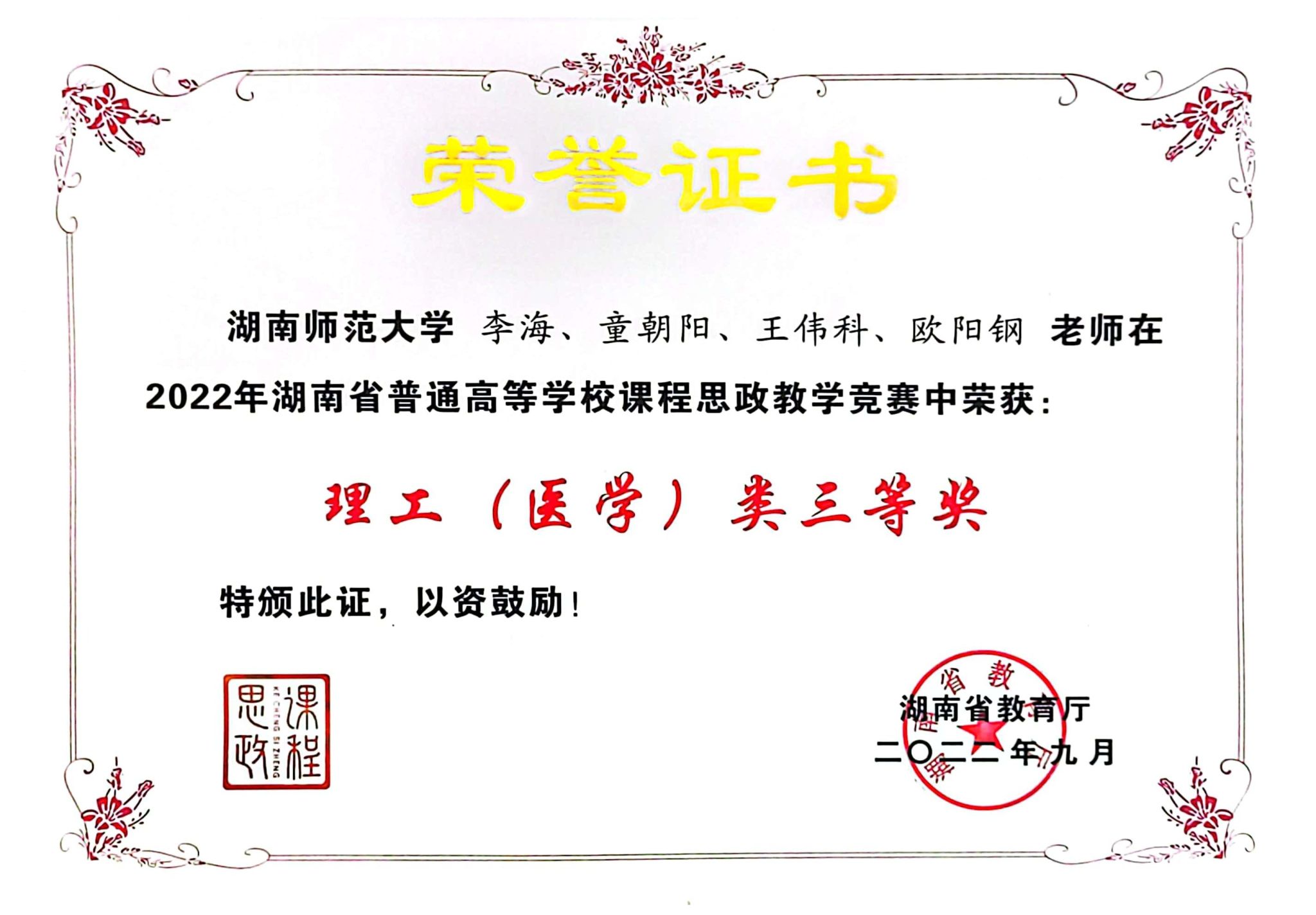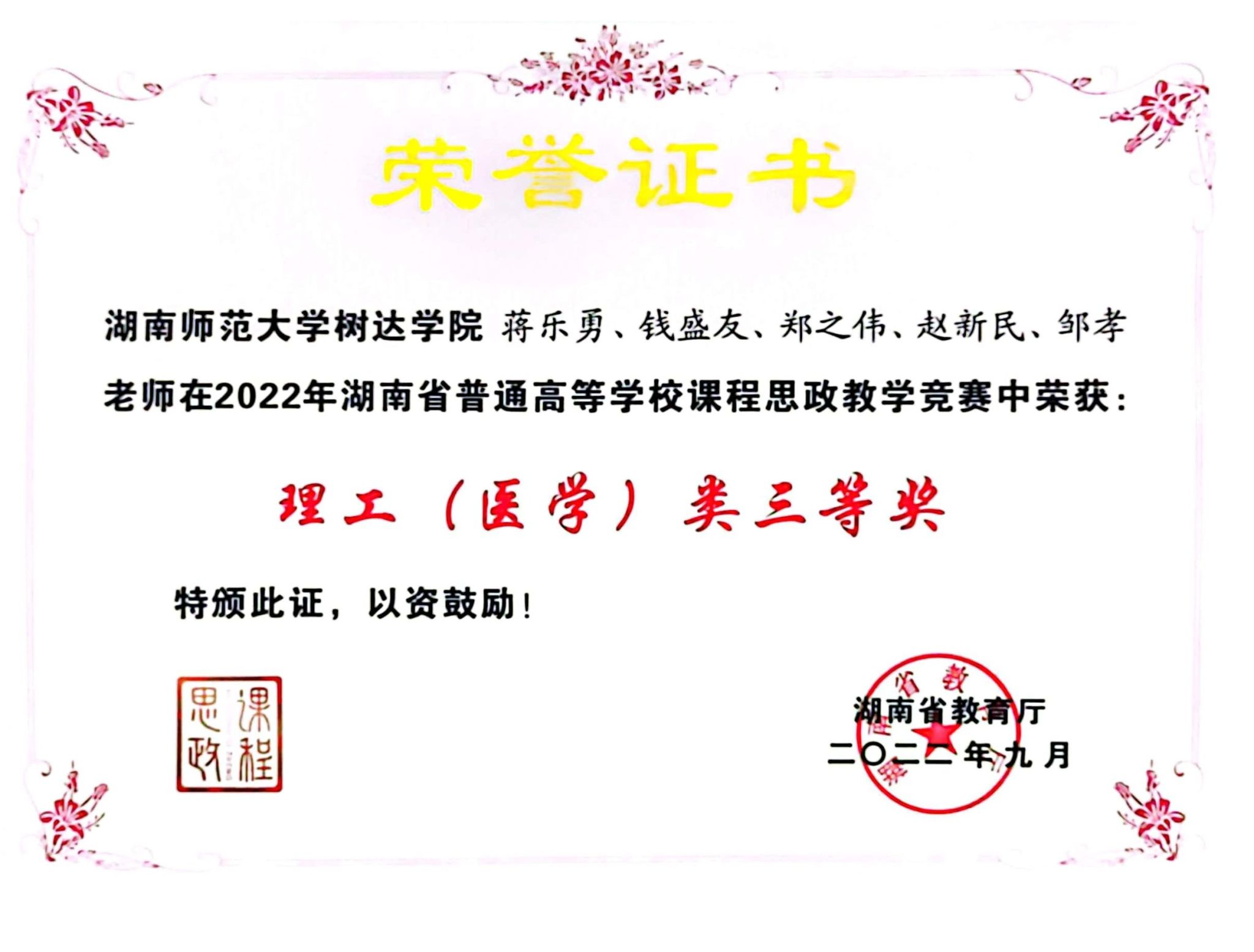 2022年湖南省高等学校课程思政教学竞赛获奖