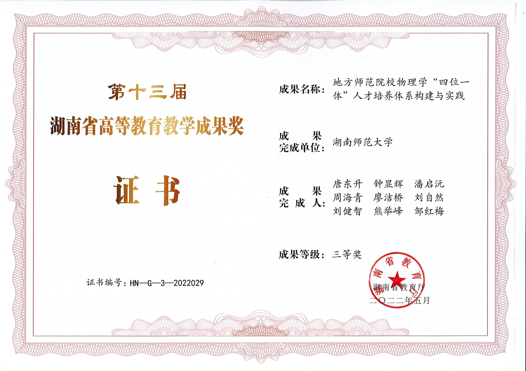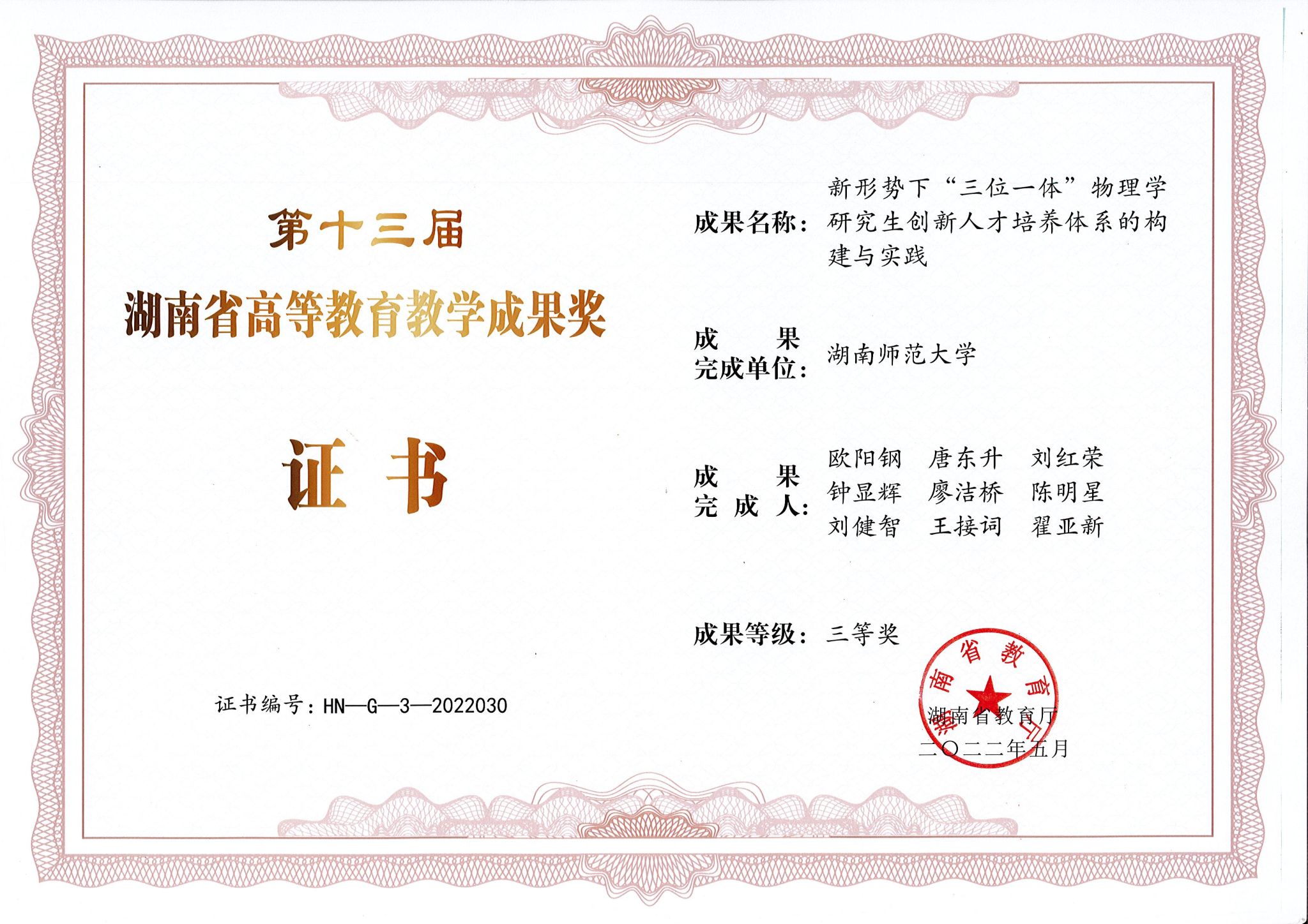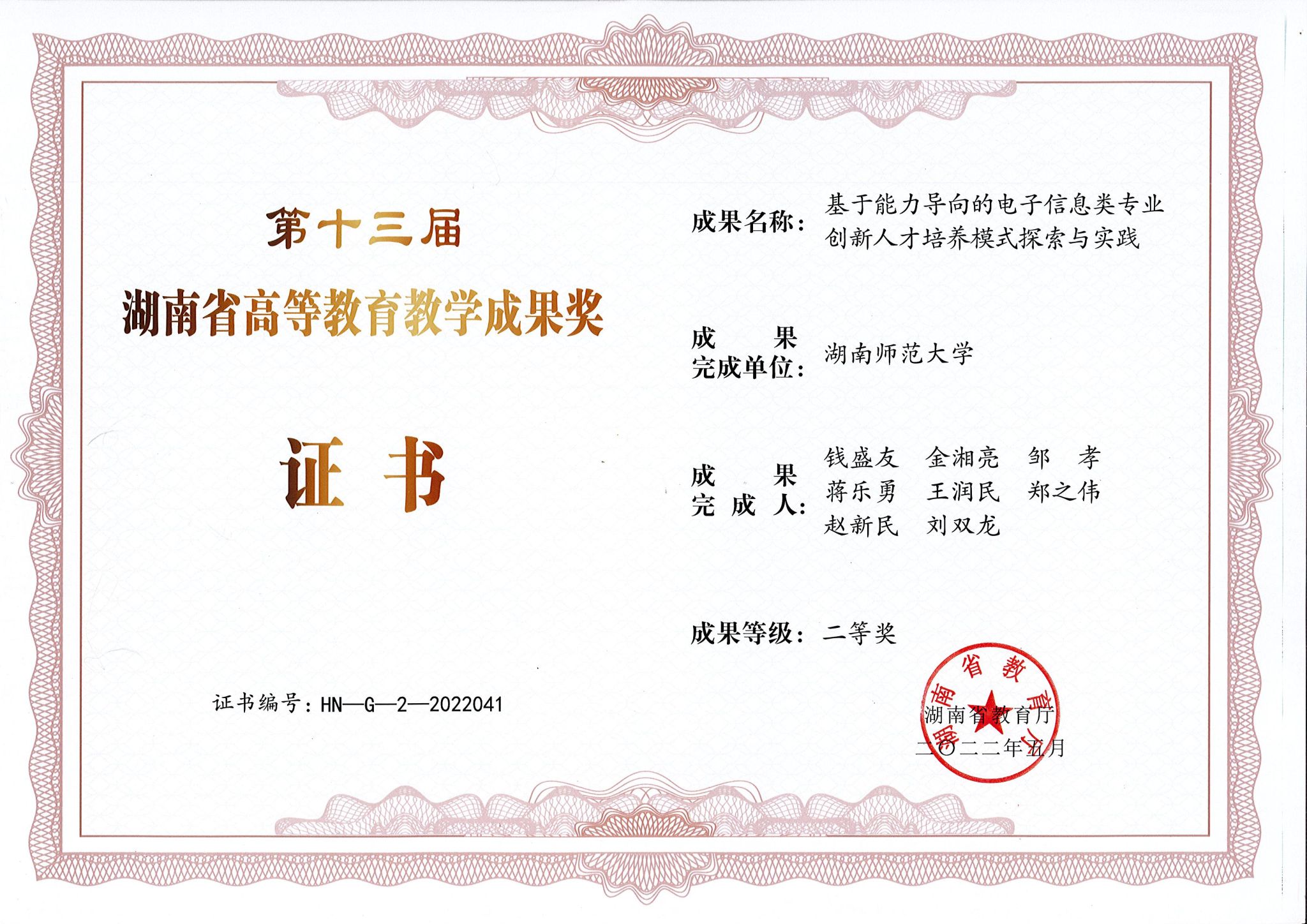 2022年第十三届湖南省高等教育教学成果奖