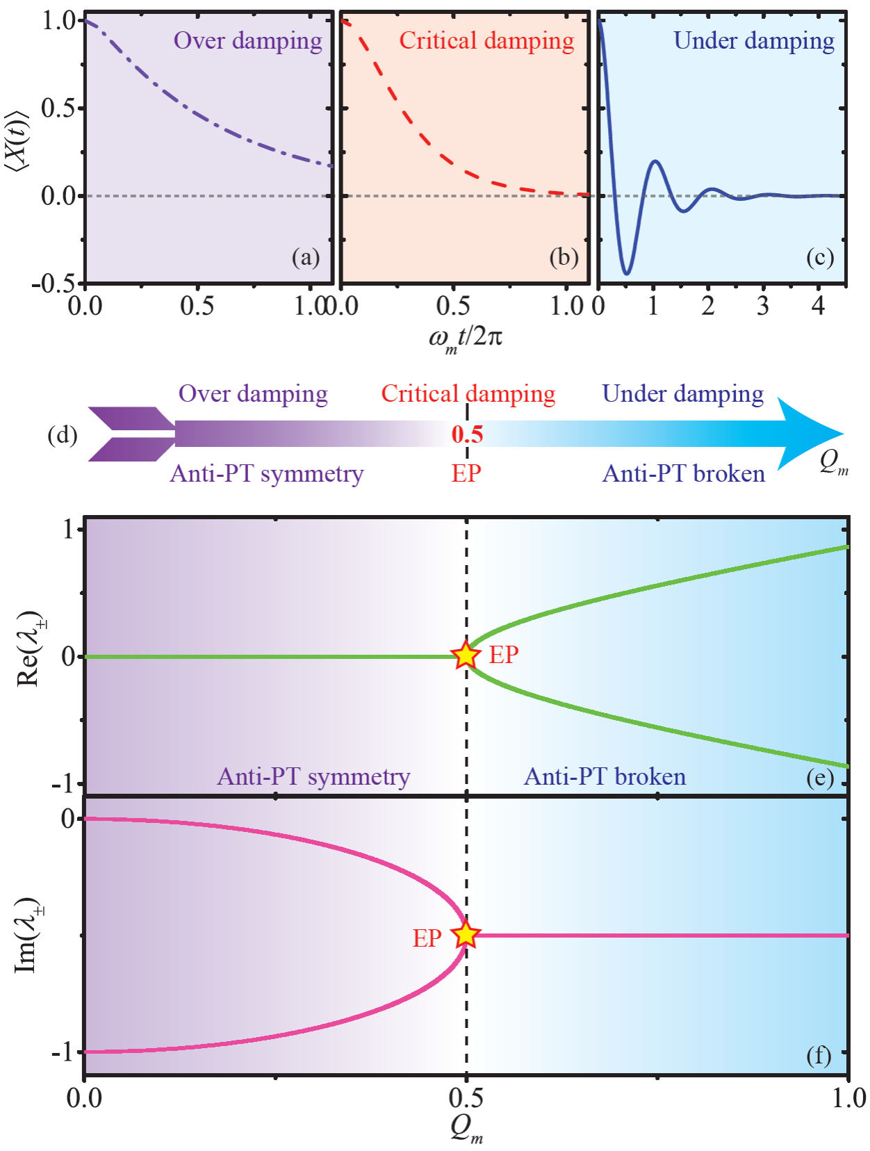徐勋卫教授与合作者在研究线性谐振子动力学方程时发现该方程的系数矩阵具有宇称-时间反对称性。阻尼线性谐振子中隐藏的宇称-时间反对称性破缺诱导了阻尼振子从过阻尼到欠阻尼的相变过程。论文的创新点包括:1.首次将阻尼振荡与PT反对称联系起来,发现PT反对称破缺诱导了阻尼振荡中从过阻尼到欠阻尼的相变过程,其中临界阻尼对应着奇异点(EP);2.提出利用光力耦合调控单阻尼振子有效频率,实现PT反对称破缺相变;3.发现基于光力耦合力学PT反对称破缺可以实现传感灵敏度的显著增强。本文的研究不仅可以加深人们对阻尼谐振系统基本物理的理解,也为探索基于PT反对称性的应用潜力开辟了新途径。