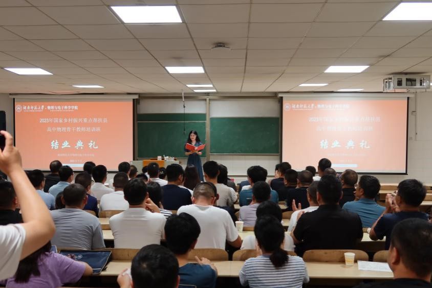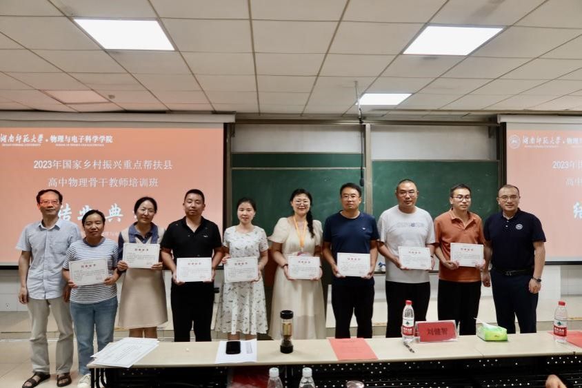 至此,2023年国家乡村振兴重点帮扶县教育人才“组团式”帮扶项目湖南师大高中物理教师培训已顺利完成。培训已结束,但是学员间的交流没有结束,学习与思考也没有结束。期待学员们回到各自教学岗位后,能够将先进的教学理念和教学方法带到校园里,带到课堂上,带到全区、全市育人环境中,以点带面,推动各省物理学科教学的发展。