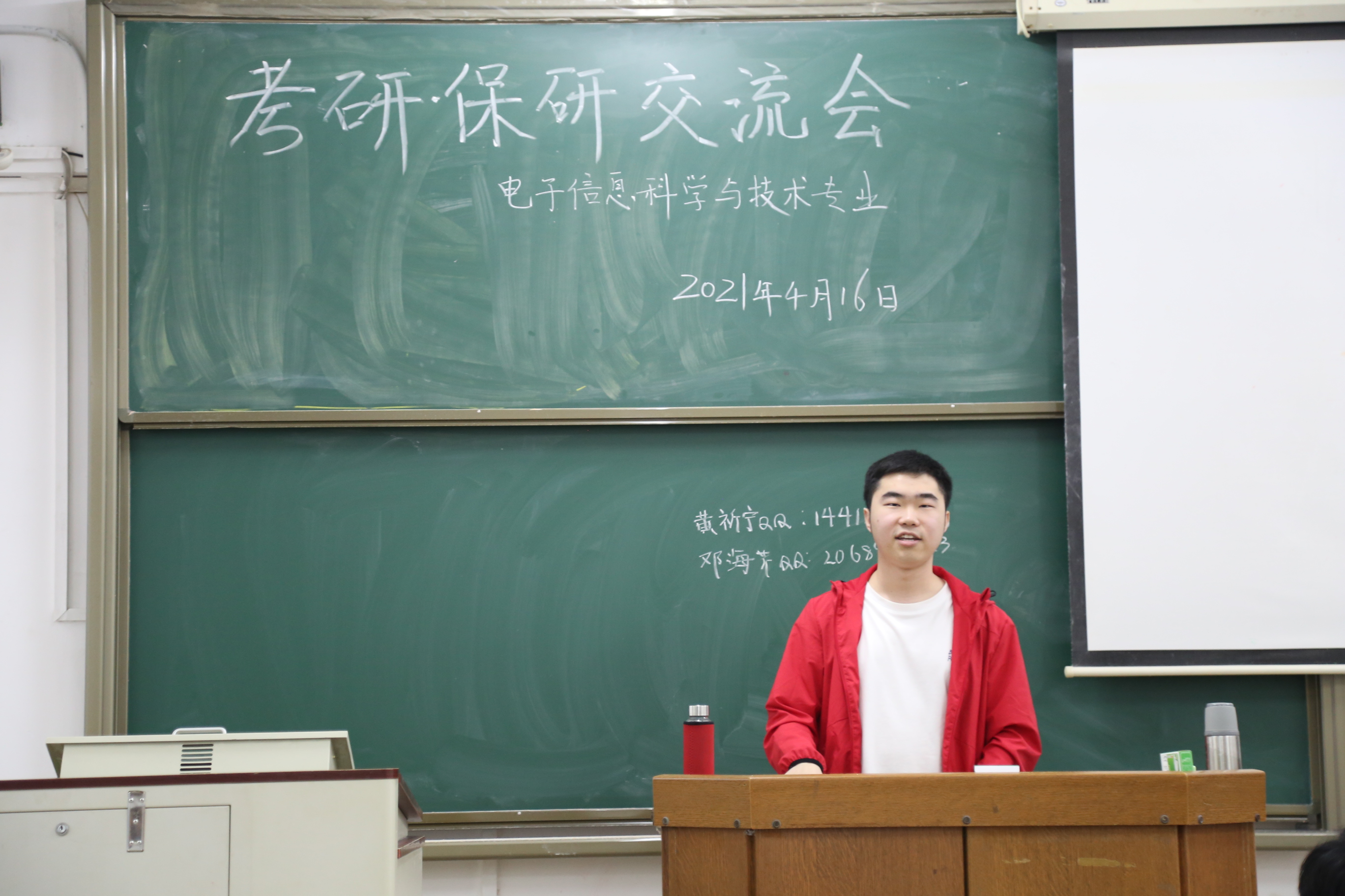 邓海芹从夏令营、保研和选择学校等方面分享自己的经验;黄祈宁针对英语分享自己的学习方法,她表示,要坚持每天记单词,提高阅读理解的正确率,完善英语作文写作等;王纬主要讲述自己在备考考研数学的心得和体会;谢嘉威讲述自己跨专业考研所遇到的困难和成功考上自己心仪学校的经历;吴舒捷同学介绍报考的国防科技大学需要注意的关键信息,并鼓励同学们积极报名自己心目中的理想学校。