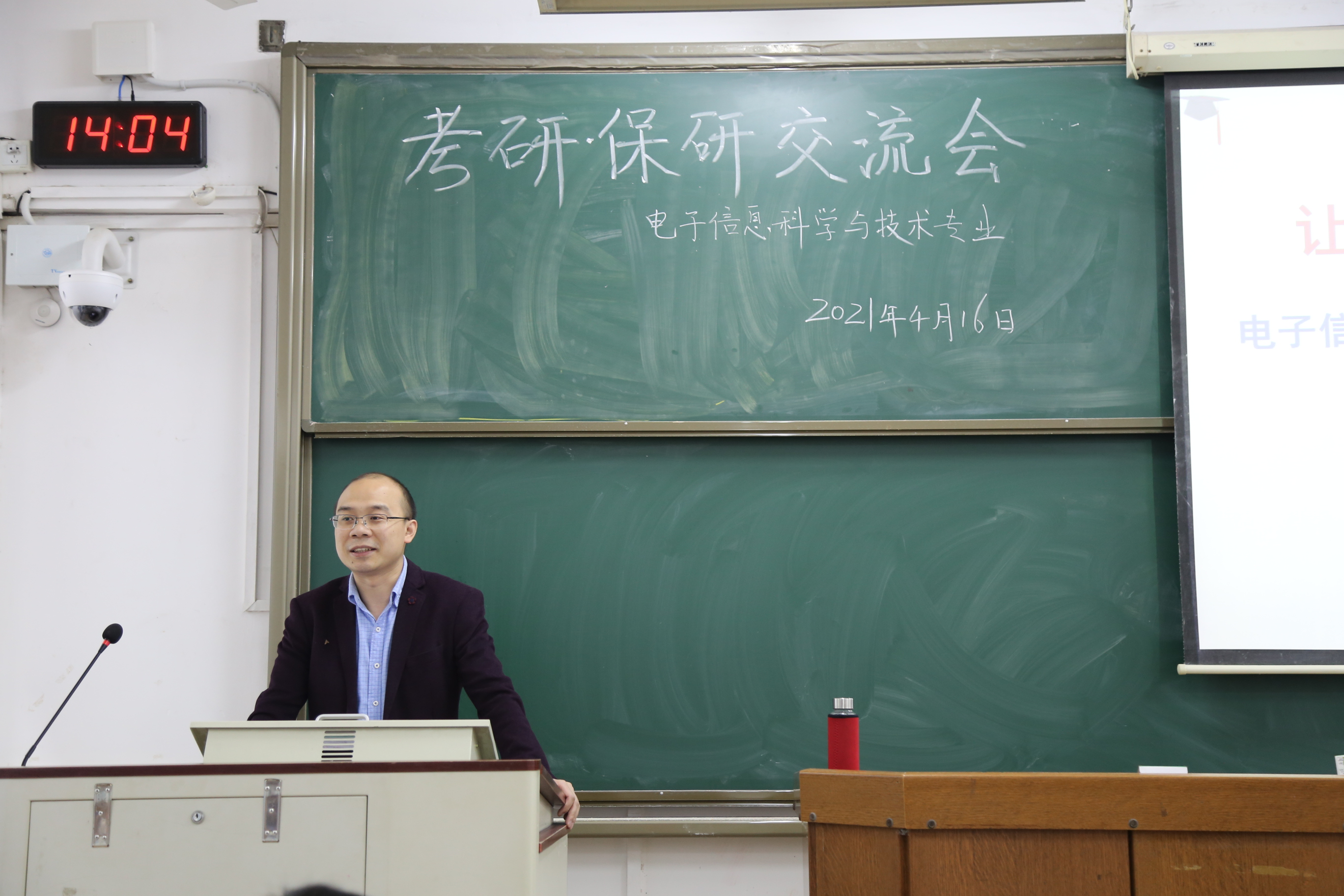 郑之伟简要介绍了学院电子信息科学与技术专业的现状,本专业已被教育部批准为2020年度国家一流本科专业建设点,鼓励同学们抓住机会,努力学习,树立目标,找准定位,通过自身能力、所获得的资源和专业优势做出最好的决定;分析了同学们的考研动机、考研步骤以及如何选择心仪的学校、专业和导师等,并强调考研必须要有坚定、强大的信念,坚持不懈才能有收获。在专业选择时,必须认真分析专业发展前景,冷静评价个人能力,选择自己感兴趣的专业。他希望2018级即将准备考研的同学都能取得理想的成绩,为自己的未来增添一份底气。