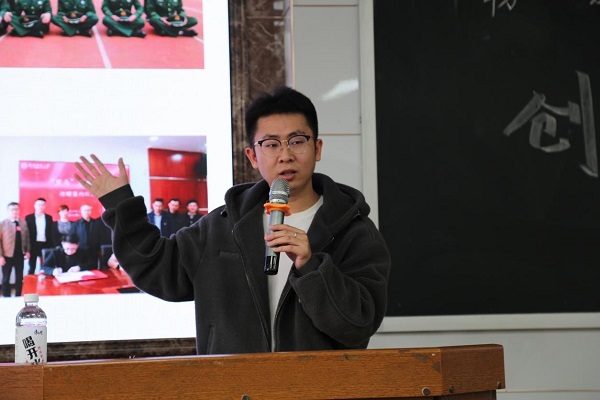 胡含兵结合自身经验为新生大学规划和如何参加创新创业比赛提供指导。主讲人以“创业实践与学习如何平衡”为主题,结合自身经历,为同学们介绍他的大学规划和参赛之路。胡含兵从社会背景、产品服务、市场容量、营销模式和团队构成等方面介绍了项目申请书的编写,并鼓励同学们积极参与创新创业大赛,为初步进入大学的新生树立创新创业思维。