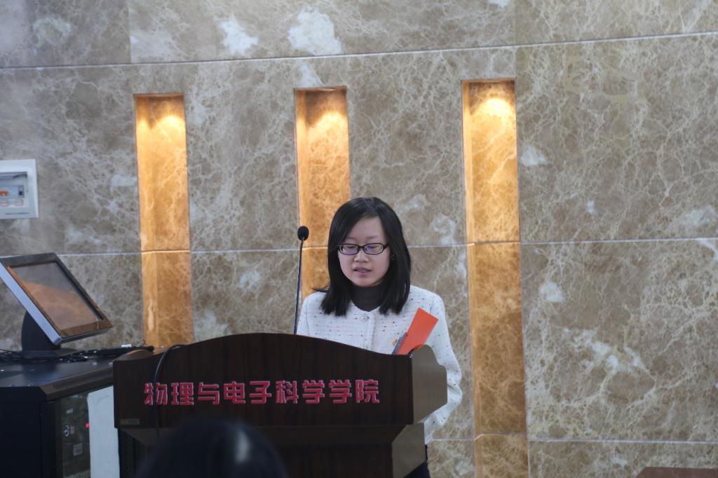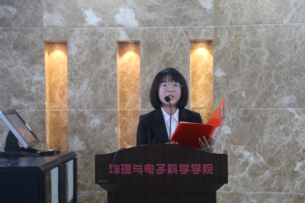 向宇佳在演讲中传达,物电院青工部一直秉承着“立足校园,服务社区,面向社会”的思想,着手调动着广大青年志愿者的积极性,培养青年学生的公民意识、奉献精神与服务能力,促进青年学生科学文化素质的提高以及推动青年学生的健康成长。她结合个人经历,阐述了志愿者的宗旨:“奉献、友爱、互助、进步”。她鼓励大学生积极参与志愿服务活动,将个人与社会融为一体,帮助他人的同时,提高,完善和发展自身素质。