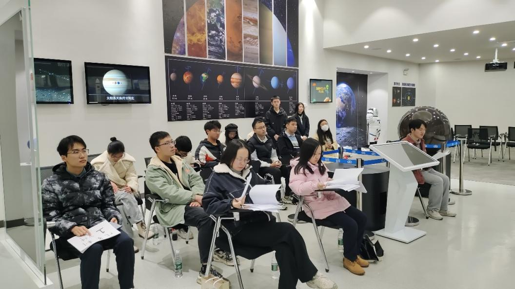 竞赛分为笔试和讲解两个部分,笔试部分主要考察选手天文知识的基本功,讲解部分主题由同学们抽签决定,主要考察选手的知识储量和临场应变能力。比赛开始前,天文馆讲解员徐伊露同学从讲解技巧、讲解形式和讲解内容等方面为选手们进行示范。