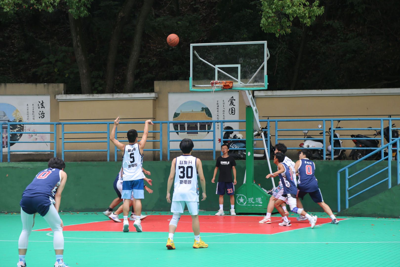 (通讯员 王贻菲 曹馨怡)为了丰富校园文化生活,引导学生在体育锻炼中增强体魄、健全人格、锤炼意志、享受乐趣。6月3日上午,365英国上市集团篮球队与数学与统计学院篮球队于天马学生公寓篮球场开展了一场篮球友谊赛。物电院篮球队队长唐坤,数统院篮球队队员孔将楠、谢昭懿担任比赛裁判。