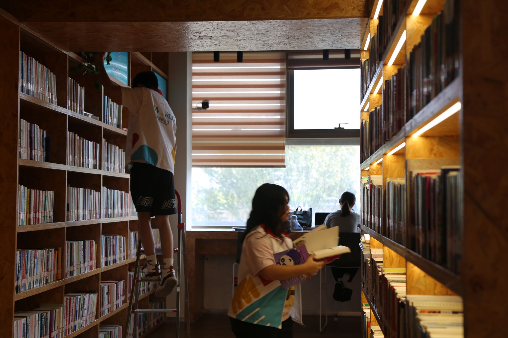 志愿者整理和摆放图书
