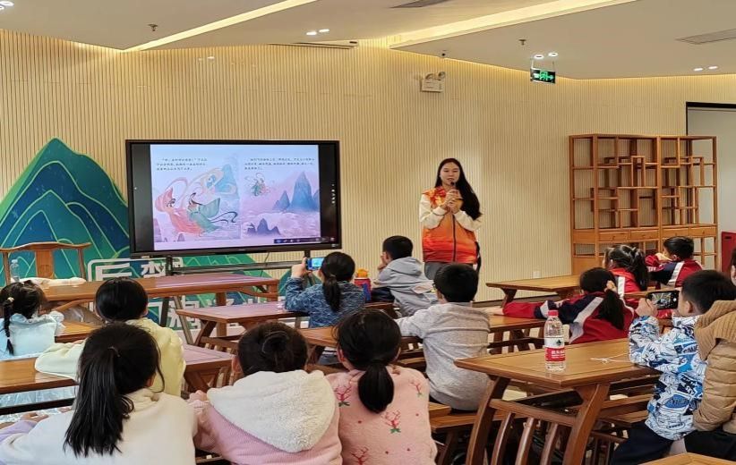 活动过程中,王孟旸为小朋友们讲解了神话故事《仙女造桥》,并以有奖提问的方式与小朋友们进行互动,活跃了课堂氛围,也引发了小朋友们对于故事内容的深入思考。《仙女造桥》故事中的仙女和黑龙都是古代人民想象中的神话形象,仙女造桥表达了人们对于善良、勇敢和智慧的崇尚,反映了古代人民对神灵的信仰和对英雄的崇拜,传递了人们对于和平、友谊和互助的价值观。