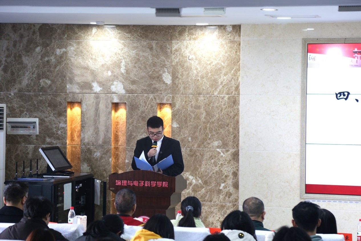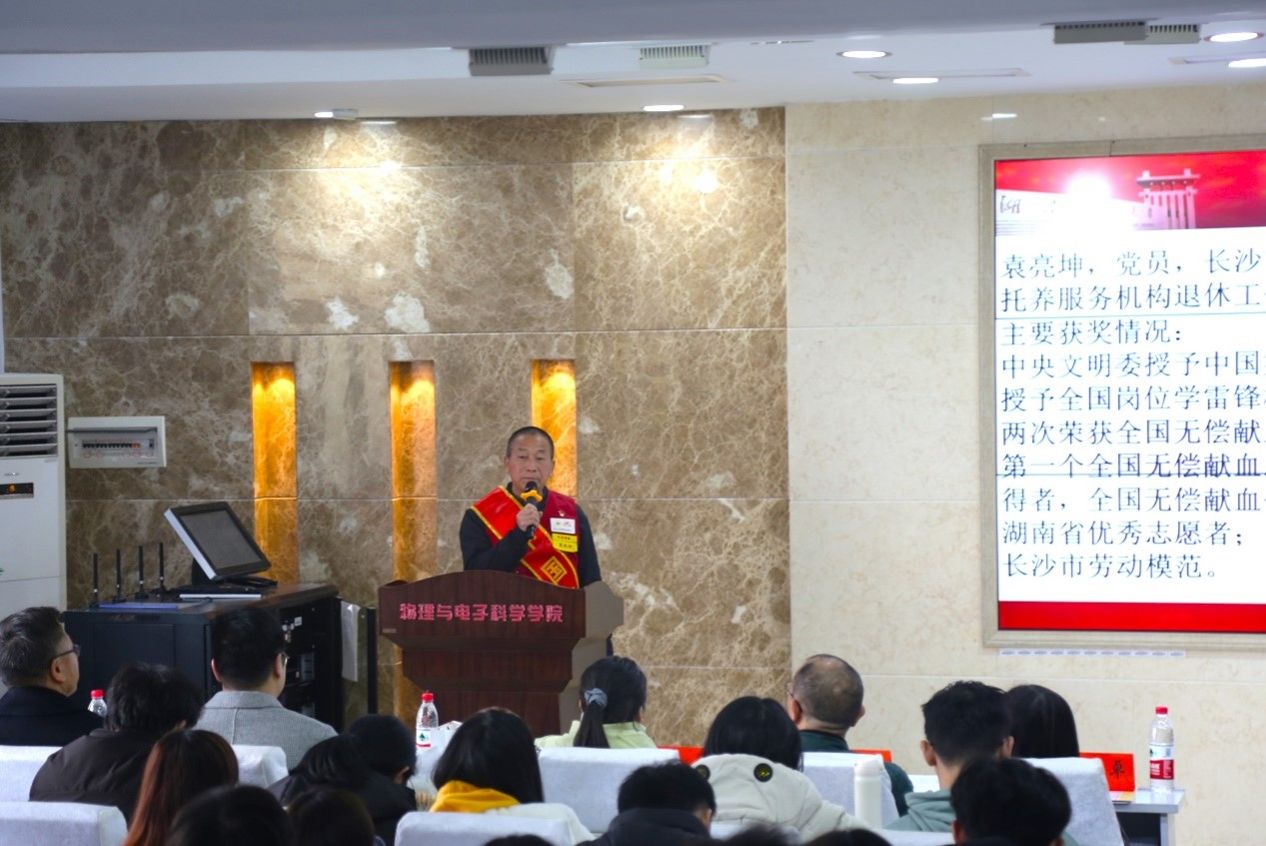 (通讯员 谭烨茜 段楚楚)12月14日中午,物电院团委青年志愿者工作部于理学院509报告厅开展“爱心献社会,真情暖人心”志愿者精神宣讲会。湖南省科学技术馆公众服务部部长周辉军,长沙市博爱阳光家园残疾人托养服务机构退休工作人员袁亮坤(中央文明委授予中国好人,中共中央宣传部授予全国岗位学雷锋标兵),暖心社工机构总干事周平,物电院2021级学生陈博担任主讲人。物电院党委副书记郭铭伟担任点评嘉宾,2023级学生党伟莎担任担任主持人。