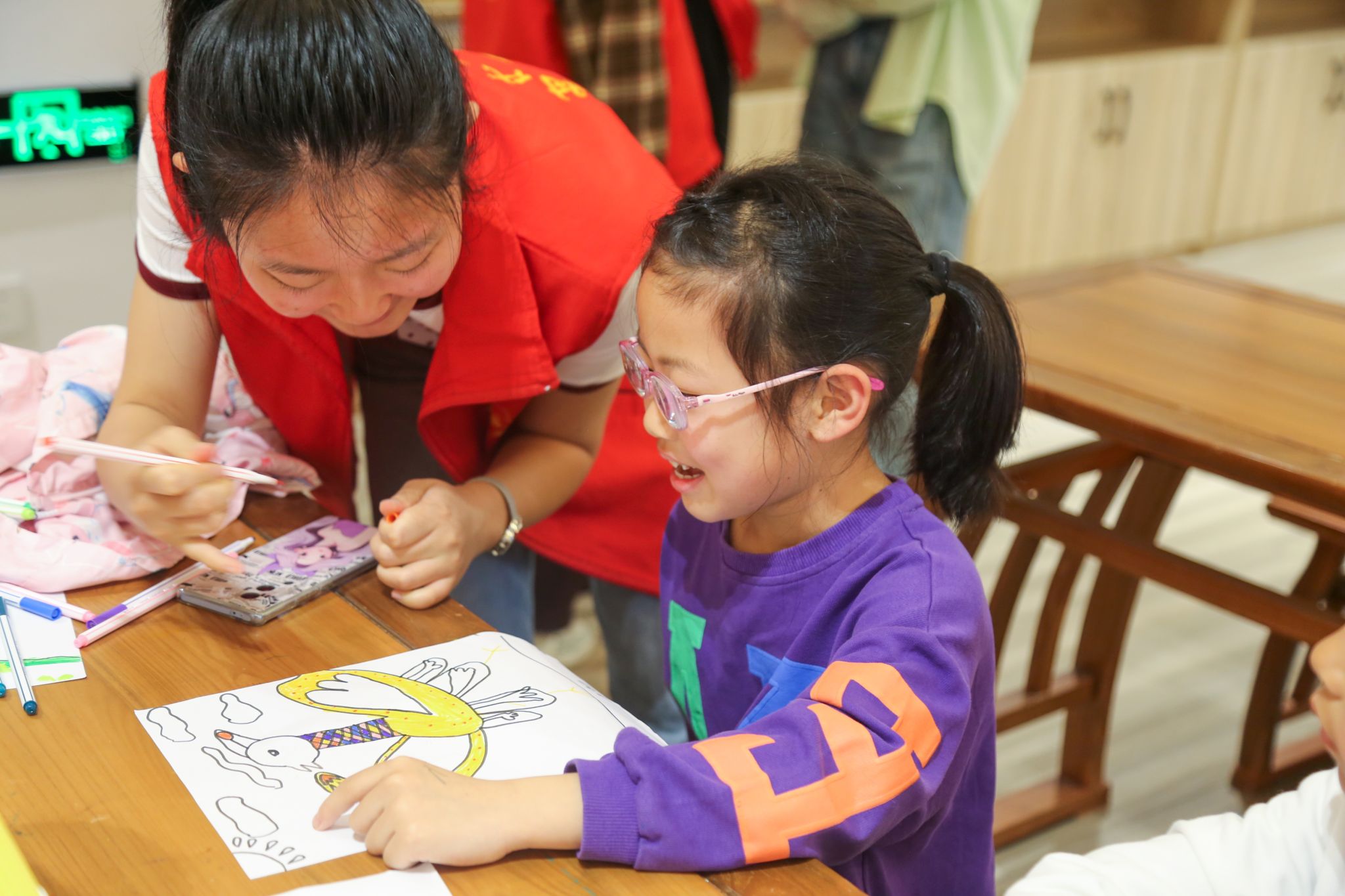 志愿者协助小朋友绘画