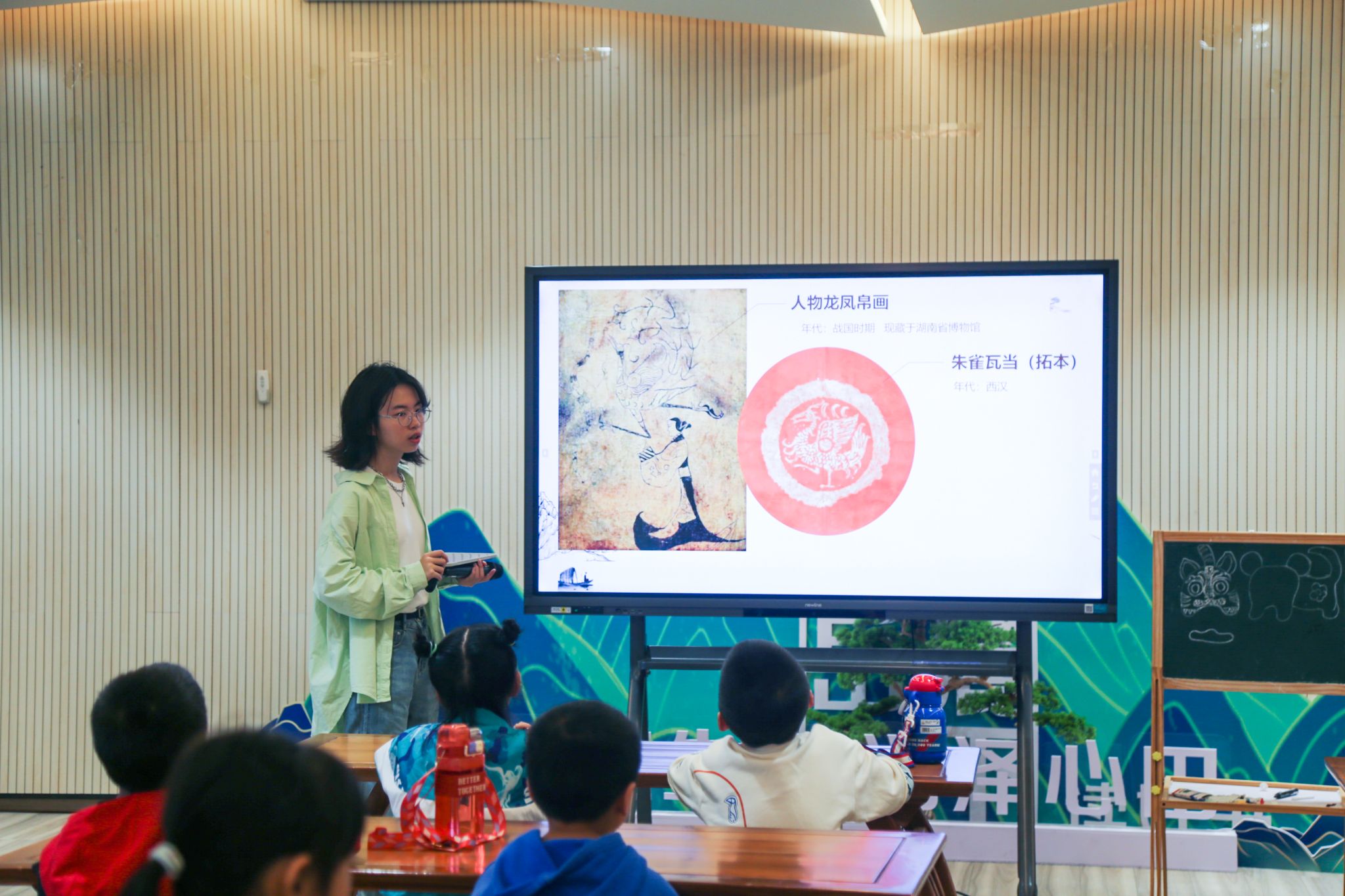 主讲人为小朋友们讲解相关文物