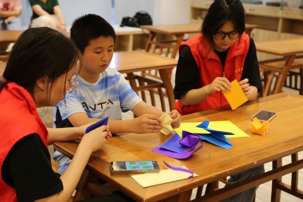 志愿者教小朋友折纸