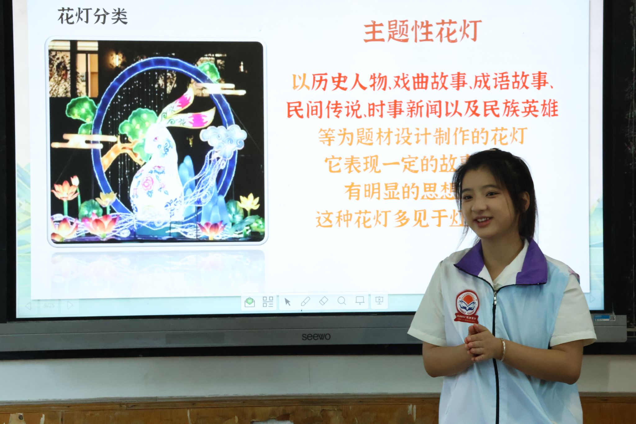 在莲花灯制作环节,姚晨铭为孩子们介绍了花灯的历史渊源、制作工艺及其在节日庆典中的重要意义,并通过PPT展示和实物模型,详细讲解了莲花灯和水拓画花灯的制作步骤和技巧,激发了孩子们浓厚的兴趣。服务队成员给孩子们分发了彩纸等制作材料,孩子们在服务队成员的指导下,一步步折叠、粘贴,将彩纸转化为生动的莲花瓣,再巧妙地组装成灯体。活动过程中,孩子们时而低头专注,时而抬头交流,教室里弥漫着浓厚的创作氛围。
