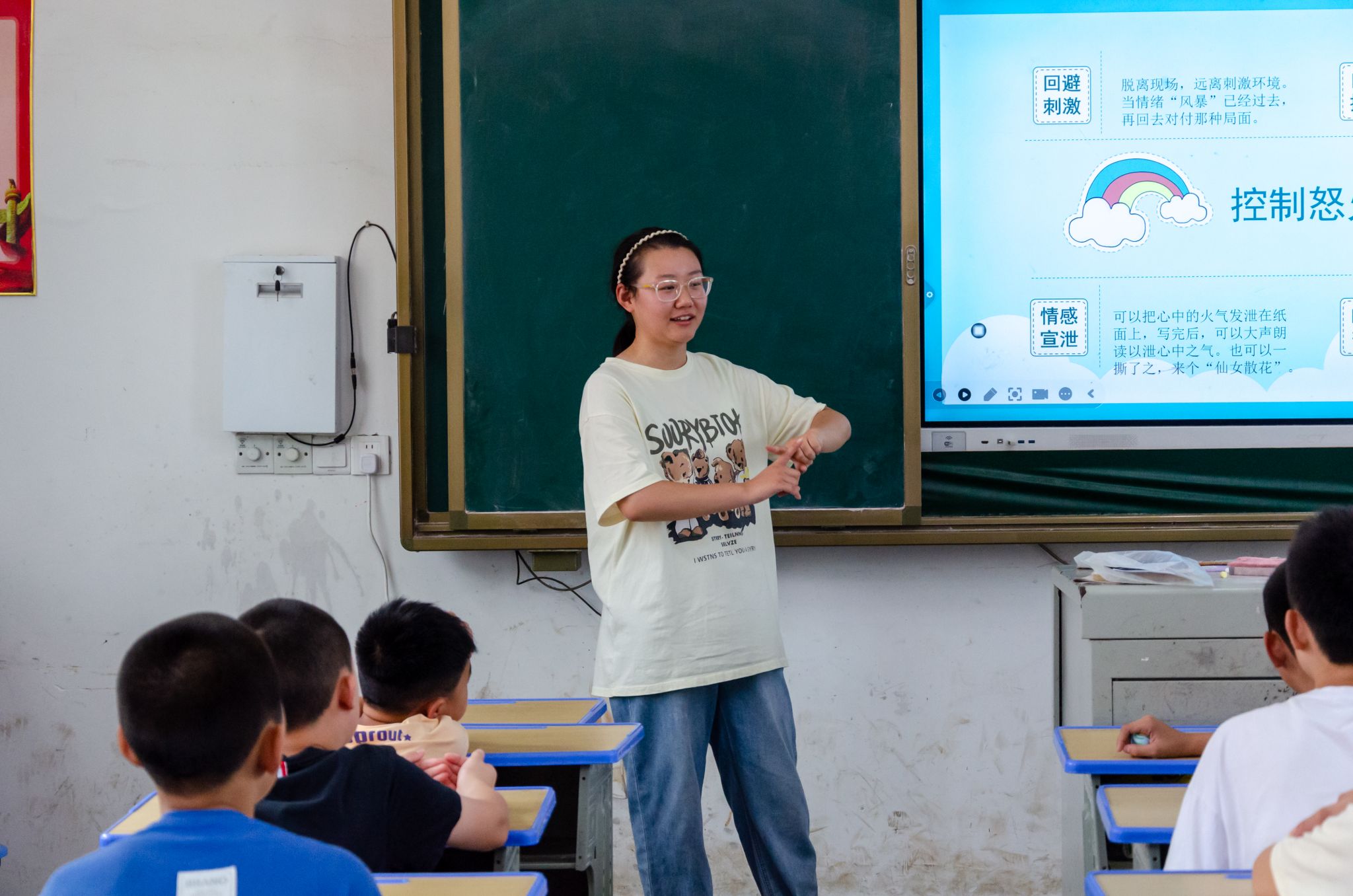 课程分为“什么是心理健康”、“如何进行心态调整”和“如何管理好情绪”三个部分。葛梦雨首先介绍了心理健康的定义,强调心理健康对于个人成长的重要性。在“如何进行心态调整”这一部分,葛梦雨分享了多种心态调整的方法,如积极思考、自我暗示、目标设定等。葛梦雨通过深入浅出的讲解,帮助同学们了解心理健康的重要性,并教授他们如何在面对生活和学习中的压力时进行有效的心态调整和情绪管理。此外,课程中设置了多个互动环节,如小组讨论、角色扮演等,让同学们在实际操作中掌握心理健康知识和技巧。这些环节不仅增强了课程的趣味性,还提高了同学们的参与度。