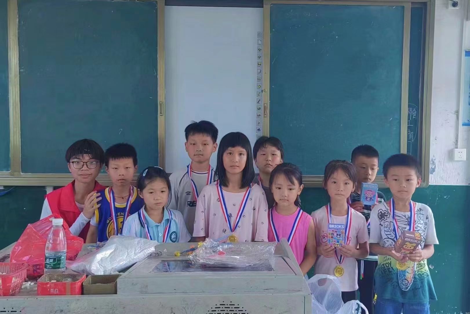 经过激烈角逐,各小队在不同项目分别取得了优异的成绩,支教队队员为获奖队伍颁发了奖状和奖品,以表彰他们在运动会中的出色表现,每个孩子都有所收获,脸上露出微笑。