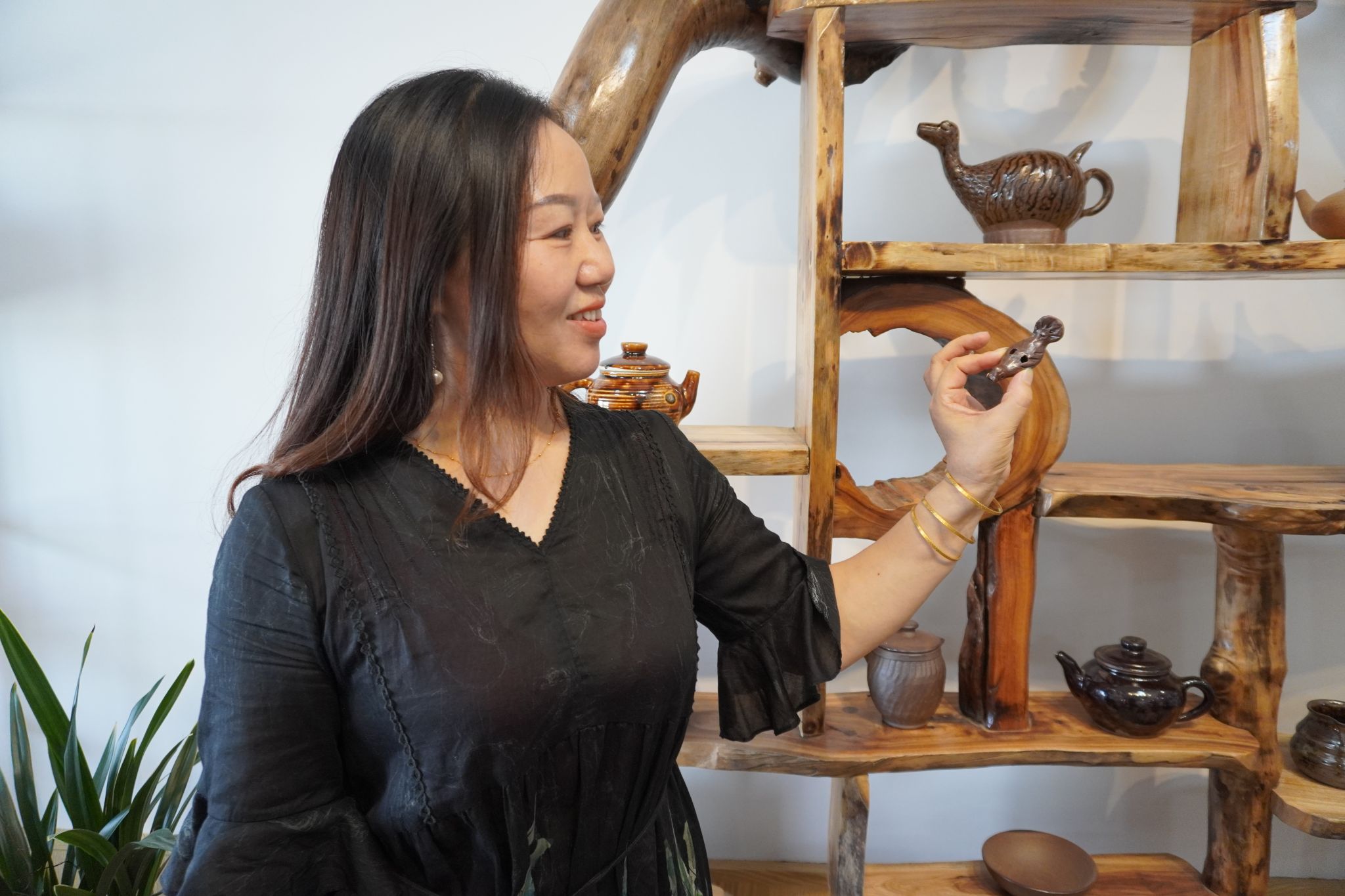 肖小华展示洞口木雕鸟哨
