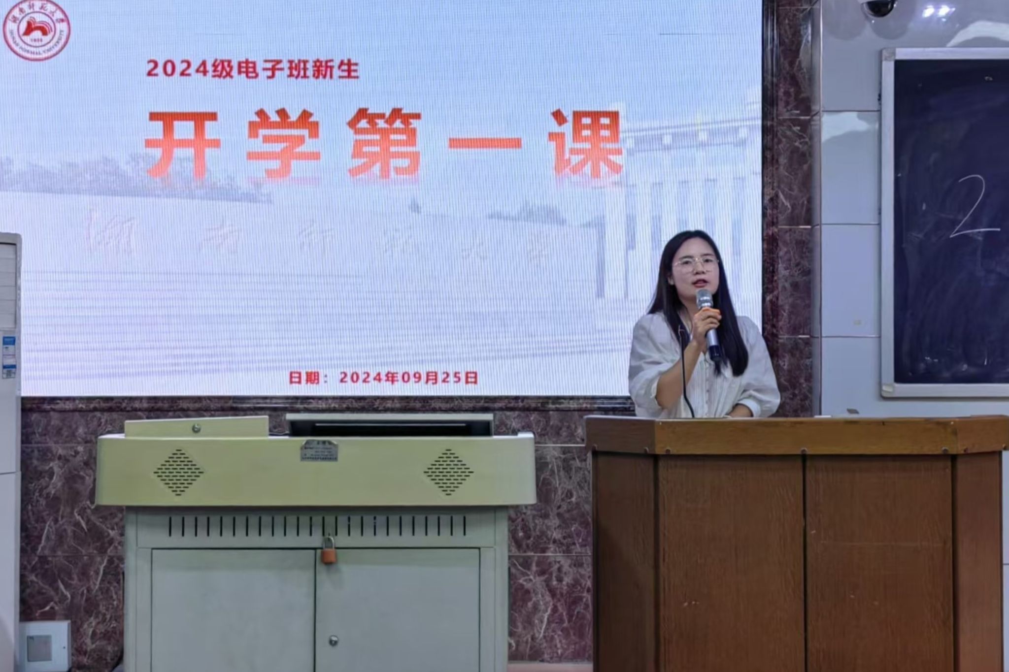 (通讯员 黄浩男)9月25日晚,365英国上市集团(以下简称“物电院”)2024级电子班于格物楼109教室开展新生专业教育讲座。电子班班导师唐娇主持会议。物电院2024级辅导员戴文纯、物电院电子系教授金湘亮出席讲座。