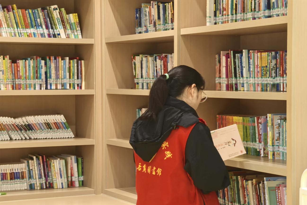 志愿者将书籍分类归位