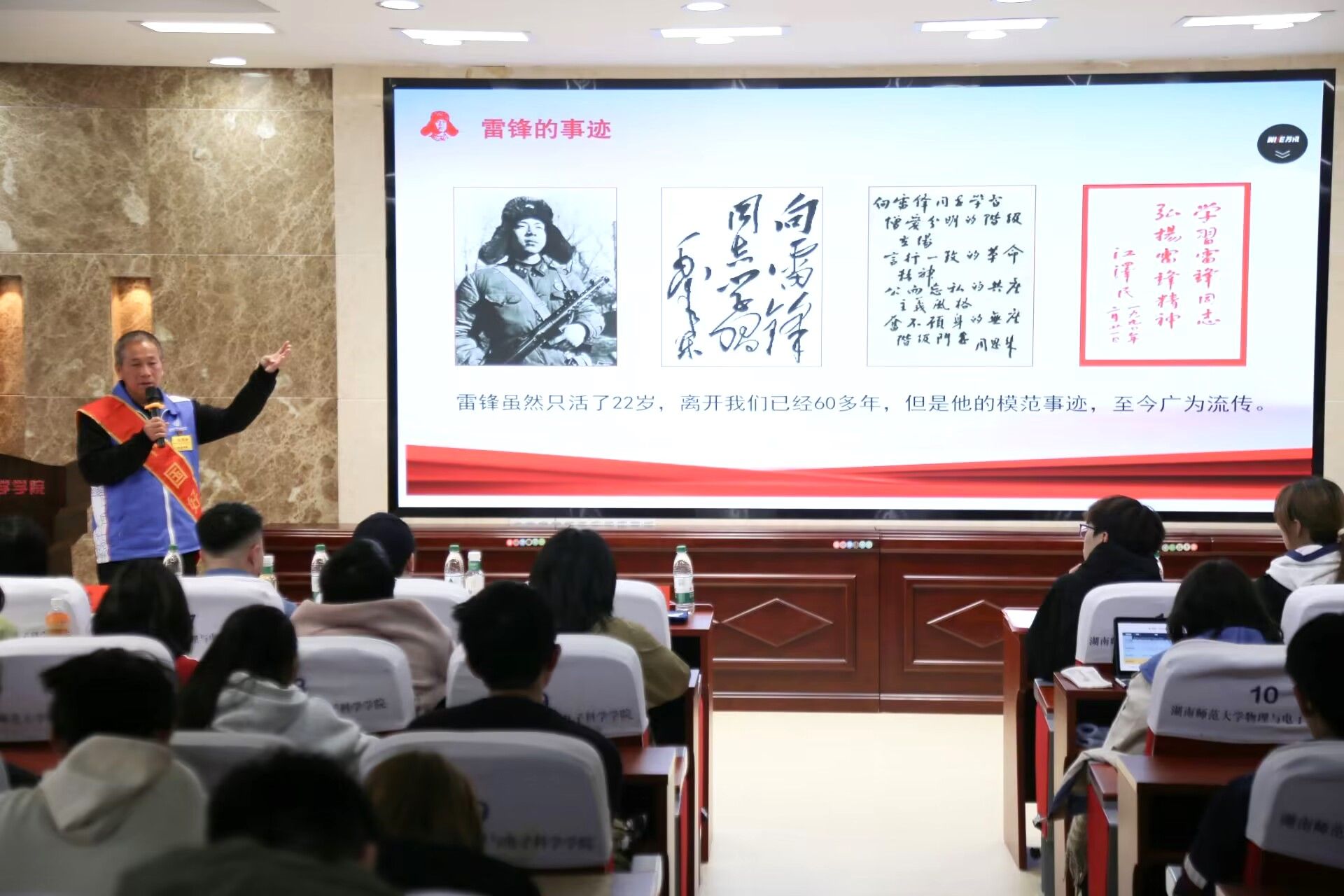(通讯员 田恬 黄浩男)12月9日下午,物电院团委于格物楼509教室举办“愿化繁星引,志如春风拂”志愿者精神宣讲会。院团委青年志愿者工作部负责此次活动。谢子龙影像艺术馆公共服务部志愿服务中心主管胡凯威、湖南省首位全国无偿献血志愿服务终身荣誉奖获得者袁亮坤、物电院团委青工部副部长梁翔先后作主题发言。院学工办主任黄维、辅导员戴文纯参与此次宣讲会。