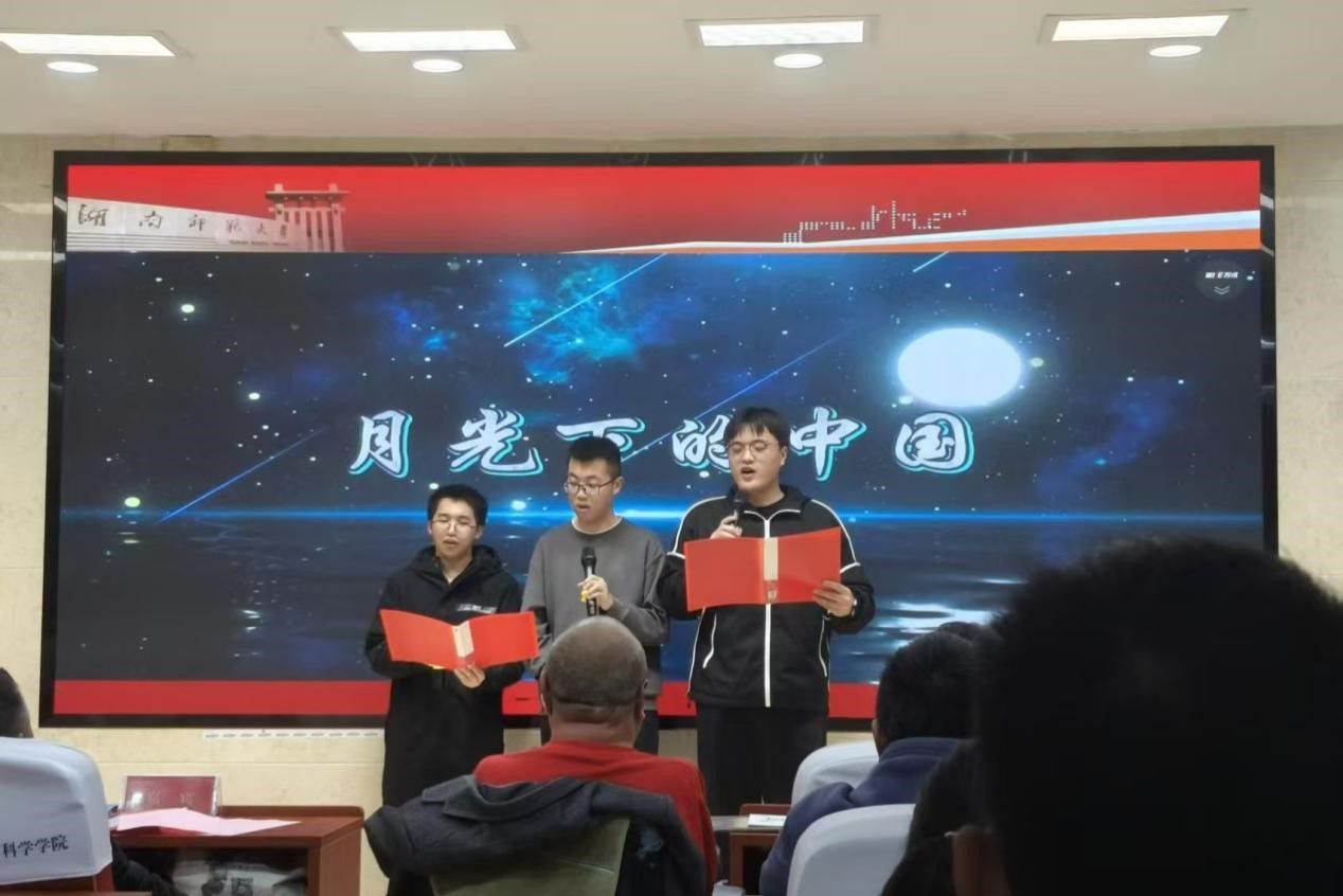 随后,蒋文卓勉励学子以志愿践行青春担当,在奉献中锤炼品格,并为协会后续工作指明方向。活动尾声,学生代表朗诵《月光下的中国》现场观众保持安静,聆听整个过程。