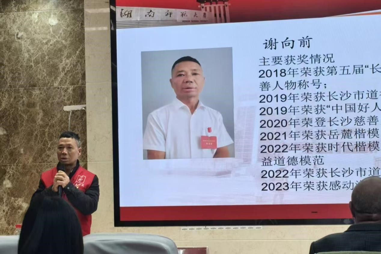 接下来是嘉宾分享环节,活动特邀“中国好人”谢向前与励志榜样周国民到场交流。谢向前讲述重度烧伤后创办农村非营利性助残机构,十余年间帮扶5000余名残障人士就业增收的故事;周国民分享高压电击致四肢截肢后,以顽强毅力实现生活自理、深耕书画创作的生命坚守,二人事迹诠释了“微光成炬”的力量,点燃了学子的公益热情。