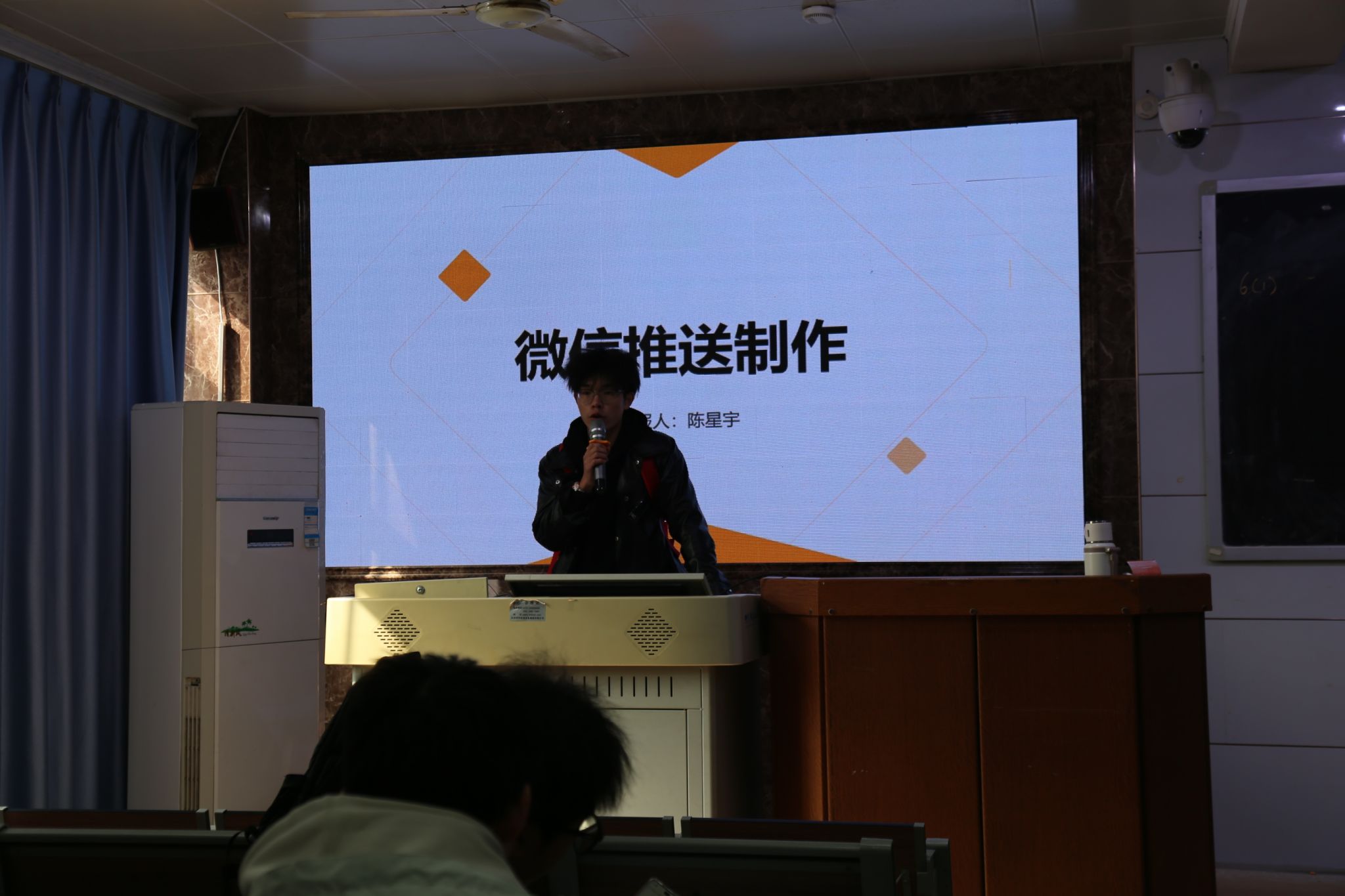 为此,陈星宇围绕“微信推送标准化创作”这一主题,进行讲解。在选题策划方面,他结合高校团学工作实际,阐述了如何围绕思想引领、活动宣传、服务互动、典型塑造等方向,挖掘既有意义、又有传播价值的选题。在文案撰写环节,他讲解了推文标题的吸引力构建、开篇的引导技巧、正文的逻辑结构与语言风格把握,以及结尾的呼吁与互动设计,指出团学类内容应兼顾严谨性与亲和力。此外,他还现场演示了排版设计的基本原则与实用工具,包括字体、配色、段落间距、图文搭配、组件运用等。