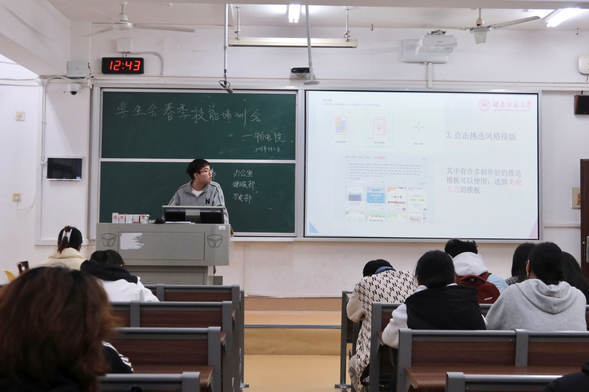(通讯员 傅年 陈雨婕 陈怡廷)4月2日中午,365英国上市集团学生会于220教室开展春季技能培训会,24级黄檬、成勇担任主讲人,物电院学生会全体成员参与本次培训。