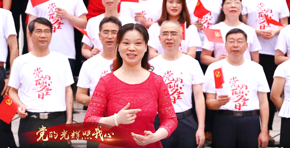 “唱支山歌给党听,我把党来比母亲。母亲只生了我的身,党的光辉照我心。”