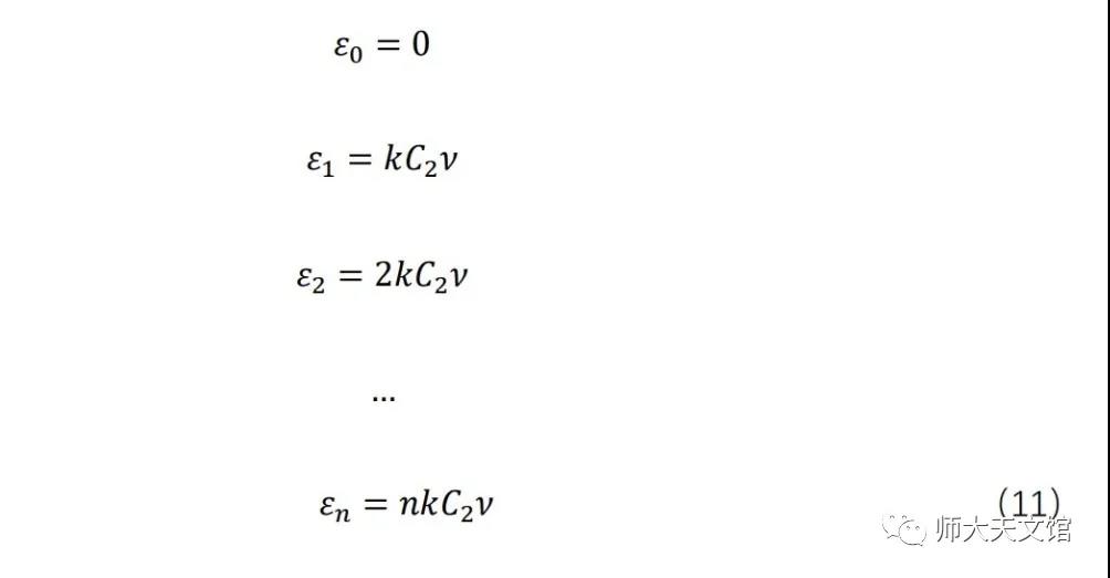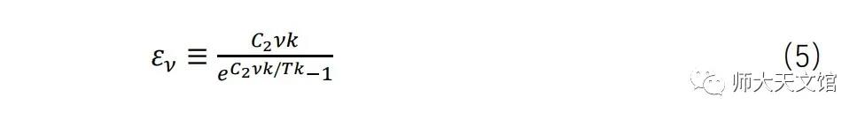 这便是Planck所得到的结论,即在黑体辐射的空腔中,电磁波的能量将以不连续的,按照某一最小能量值的整数份而变化的,于是Planck公式(3)可改写为:
