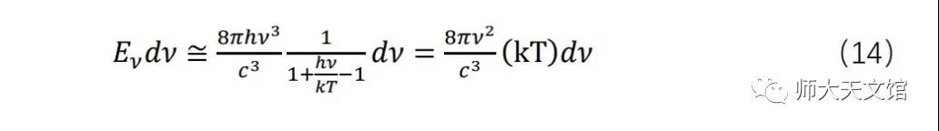 可以看到上式在𝜈→∞时便退化为Wien公式,而当𝜈→0时,我们有: