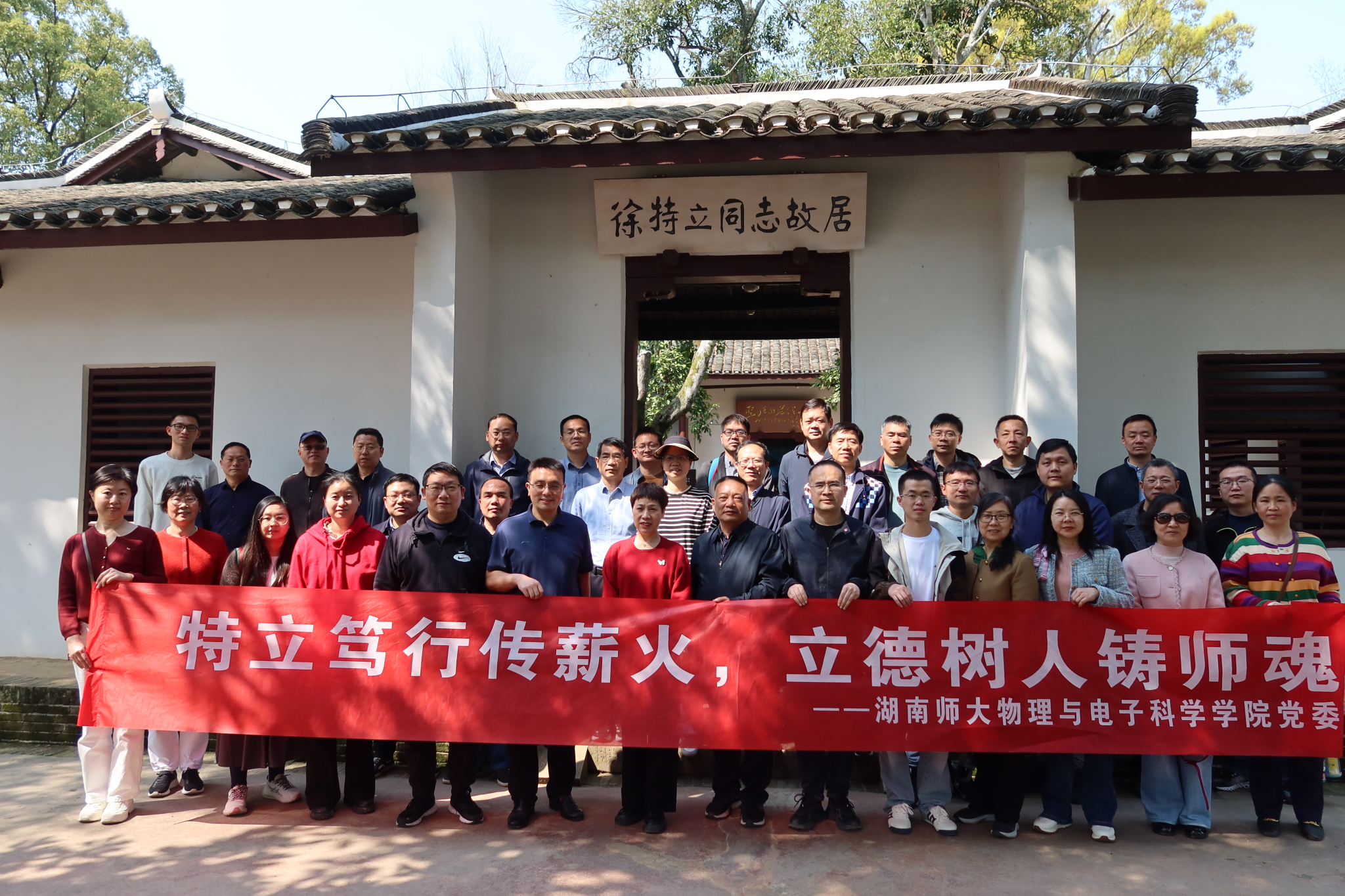 活动首站,老师们来到位于长沙县江背镇的徐特立故居。作为无产阶级革命家、教育家徐特立先生的诞生地,这座古朴的砖木建筑承载着厚重的历史记忆。在讲解员的带领下,大家认真聆听徐老“革命第一、工作第一、他人第一”的生平事迹,观看珍贵的历史照片与文物,深切感受他“实事求是、以身作则”的崇高品格。老师们纷纷表示,通过近距离感悟革命先辈的奋斗精神,更加坚定了坚持立德树人、以高质量基础研究支撑科技强国建设的信念。