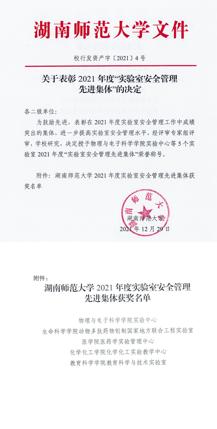 我院荣获2021年度实验室安全管理工作多项表彰