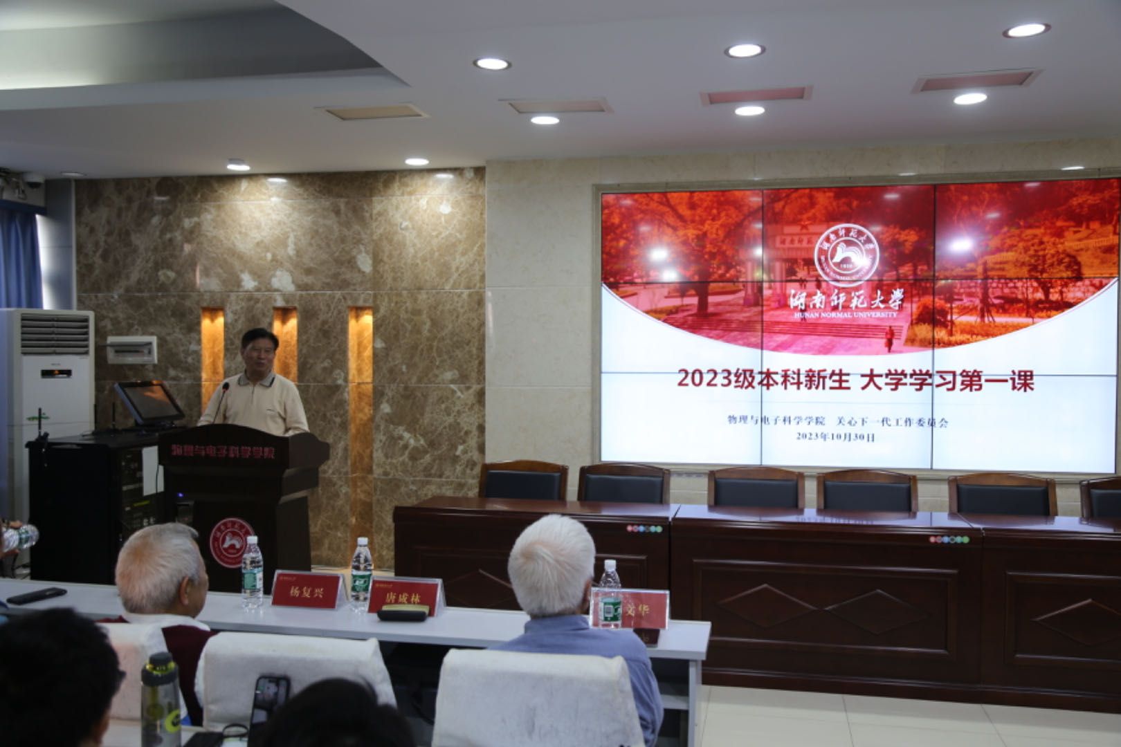 (通讯员 罗荔彤 康胜 王贻菲)10月30日下午,365英国上市集团关心下一代工作委员会于格物楼509报告厅开展2023级本科新生大学学习第一课。院关工委常务副主任唐咸林,关工委成员杨复兴、海文华教授出席讲座。院党委副书记郭铭伟主持讲座。