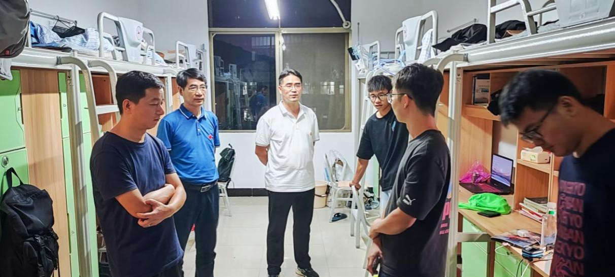 9月15日晚,罗嵘书记、欧阳钢副院长、钱盛友副院长、廖洁桥副院长、李友明副院长、科研办主任兼教法类辅导员唐湘云老师、电子类辅导员陈明老师、博士研究生辅导员刘自然老师到研究生新生寝室走访看望。老师们与新生面对面交流,询问校园报到是否顺利、宿舍环境是否适应。在交流过程中,老师们还调研了寝室是否存在硬件设施问题,提醒注意用电安全,了解大家的合理诉求,并帮助解决,同时,希望大家尽快适应研究生生活,对研究生生活进行合理规划。同学们纷纷表示感谢老师的关心关怀,必将勇敢追梦、不负韶华。通过我院的合理安排和志愿者的辛勤付出,2023级研究生迎新工作圆满完成。
