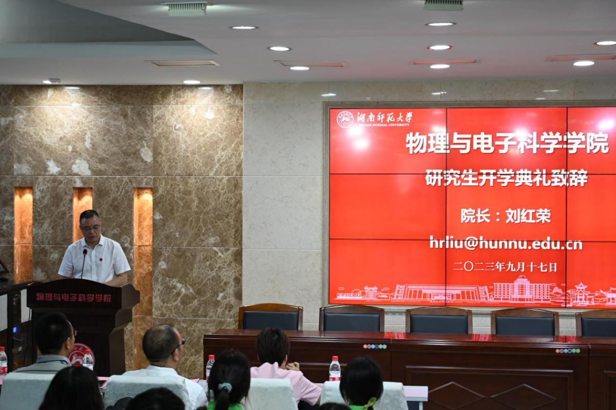 院长刘红荣代表学院为新学期典礼致辞。刘院长对研究生新生的到来表示热烈的欢迎,并对新生寄予深厚的希望。刘院长从学院发展历程、学科与专业建设、师资力量配备、学术科研成果等方面介绍了学院的基本情况。他指出跨入研究生阶段,标志着同学们已经投身祖国的科技事业,成为国家科技创新队伍的一份子。如何做好研究,他从研究的原则:诚实做人、踏实做事;做研究的方法:心无旁骛、专心致志;做研究的态度:精益求精、追求卓越,三个方面进行了阐释。最后,他祝愿每一位2023级研究生都能在学习科研中取得更为优异的成绩。