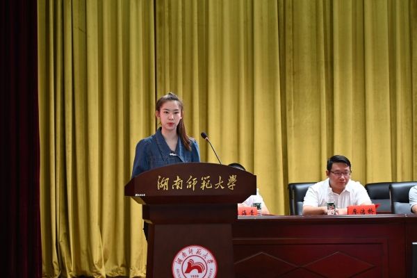 老生代表勇欣茹为新生未来四年的大学生活提出建议。她建议新生做好大学规划,学好专业知识,打好动手实践的基础,通过参加各类学科竞赛培养个人动手能力与创新精神。她认为大学生活也需劳逸结合,培养兴趣爱好,提升综合学生素养。她祝福每位物电新生都可以通过持之以的努力创造属于自己的大学生活。