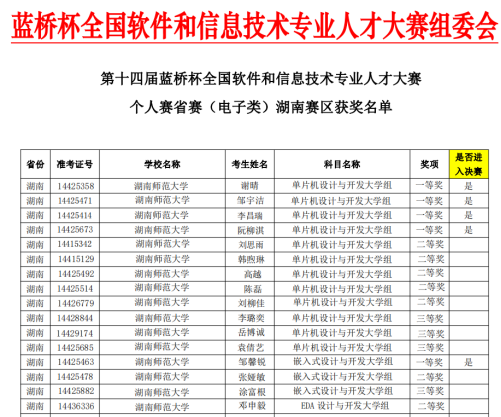 近日,由工业和信息化部人才交流中心主办的第十四届“蓝桥杯”全国软件和信息技术专业人才大赛总决赛圆满落幕。我院本科生积极参加此次比赛,共获得国家一等奖1项、二等奖3项,三等奖1项,湖南省一等奖5项、二等奖7项、三等奖4项,获奖数量创历史新高。
