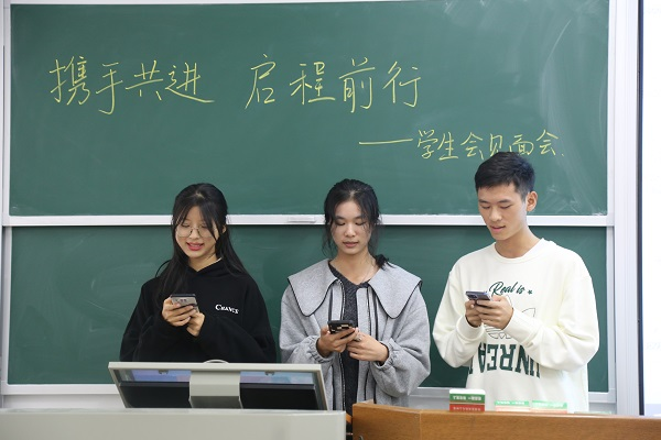郭铭伟对同学们生活、学习及部门工作等方面做出相关指导。他倡导同学们在大学生活中以学业为重,发奋努力,坚持不懈,认真做好大学生涯的规划工作,在学习之余要积极锻炼身体,与全体成员共同建设更好的学生会。