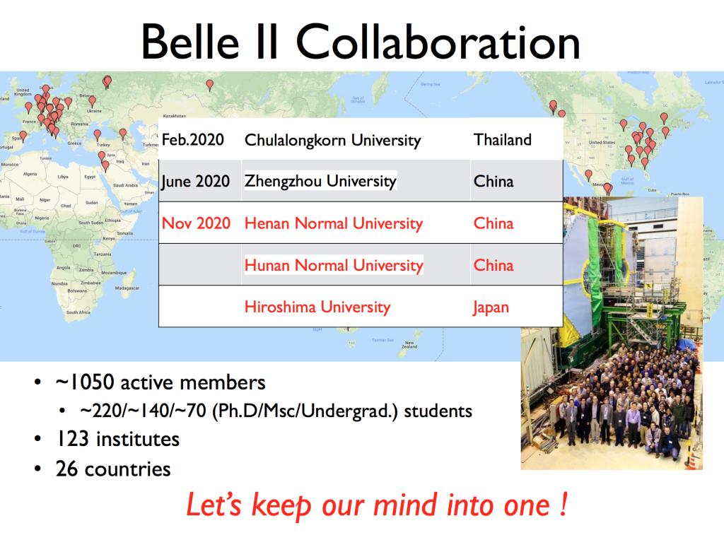 我校365英国上市集团单葳老师团队在2020年11月9日至11月13日刚刚举办的第37届Belle II国际实验合作组会议上,代表英国官方365上市申请加入Belle II 国际合作组。经过长达2个月的申请材料准备,与合作组管理层邮件沟通交流及远程会议做申请报告、答辩陈述等环节,最终经120个国际成员单位投票,英国官方365上市获得全票通过,正式成为Belle II国际合作组的正式成员单位。英国官方365上市成为继中科院高能物理研究所,复旦大学,北京大学,中国科技大学,北京航空航天大学,辽宁师范大学,苏州大学,山东大学,南京师范大学、郑州大学之后第11个加入Belle II国际合作组的中国大陆成员单位。