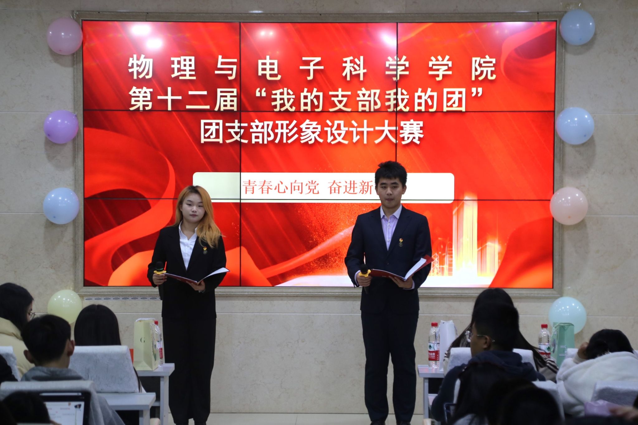 2023级各班依次展示团支部形象设计成果,展示环节包括班级介绍、班级特色展示、班级才艺展示和班级歌曲合唱。物理一班团支部带来情景剧《抗美援朝》,再现了中国一路走向辉煌的奋斗历程,为中华民族伟大复兴奏响了青春之歌;物理二班团支部带来诗朗诵《青年》,激情澎湃的朗诵中饱含着的是他们的豪情壮志与永不言弃;物理三班团支部带来诗朗诵《青春》,他们以扎实为伴,以求实为友,铿锵有力的诵读声是其活力与自信的体现;物理师范班团支部带来诗朗诵《少年中国说》,他们诵读经典,传承经典,朗朗诵读声与翩翩的舞姿结合,尽展少年生命朝气;电子班团支部带来情景剧《五四运动》,表演人员身着民国服装,高举旗帜,高喊五四运动口号,重现先锋们务实笃行精神。