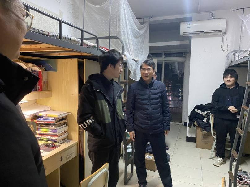 (罗瑞霞)12月19日晚,2023年全国硕士研究生入学考试临近之际,为了解同学们思想动态,鼓励同学们在最后的冲刺阶段坚定考研信念、保持学习热情。物电院党委书记罗嵘,副院长钱盛友、欧阳钢,党委副书记郭铭伟与专业老师们走进天马公寓为2020级考研学生送上冬日的温暖。