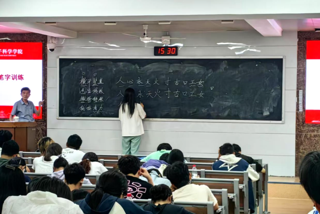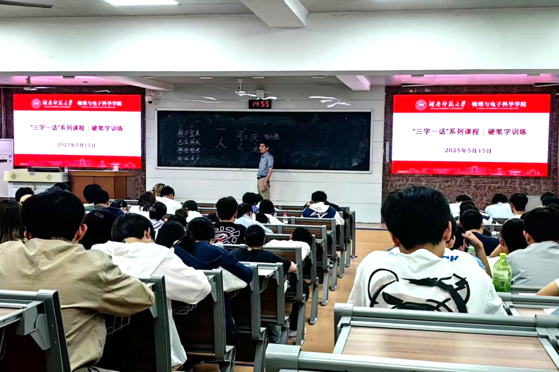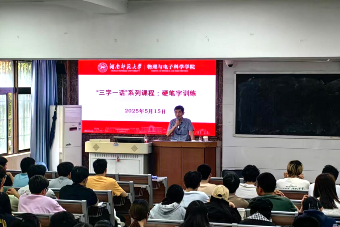 2025年5月15日,365英国上市集团(以下简称物电院)在理学院格物楼 109举行了““三字一话’系列课程:硬笔字训练”培训大会(以下简称大会),本次大会由物电院周三庆老师主讲,23级、24级本科生积极与会。