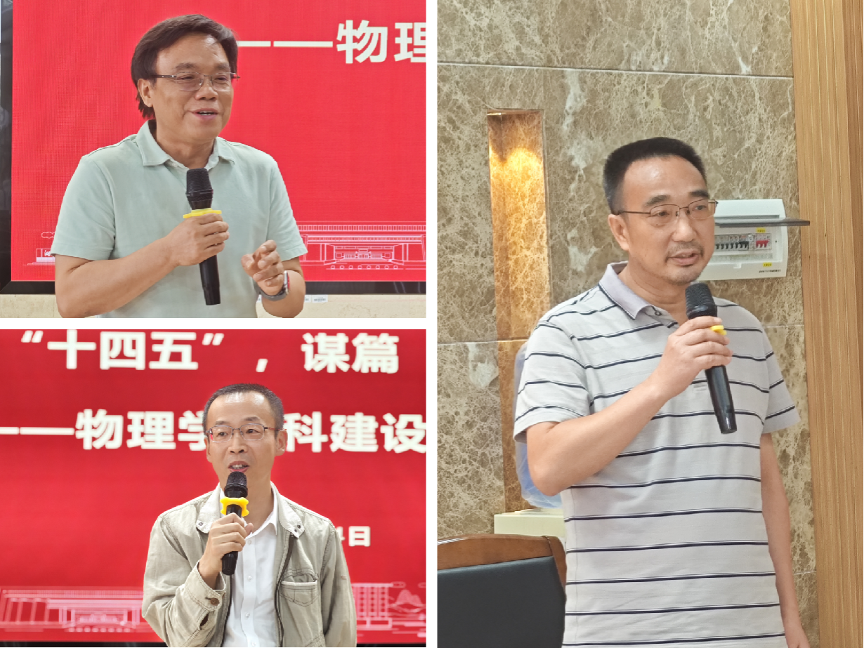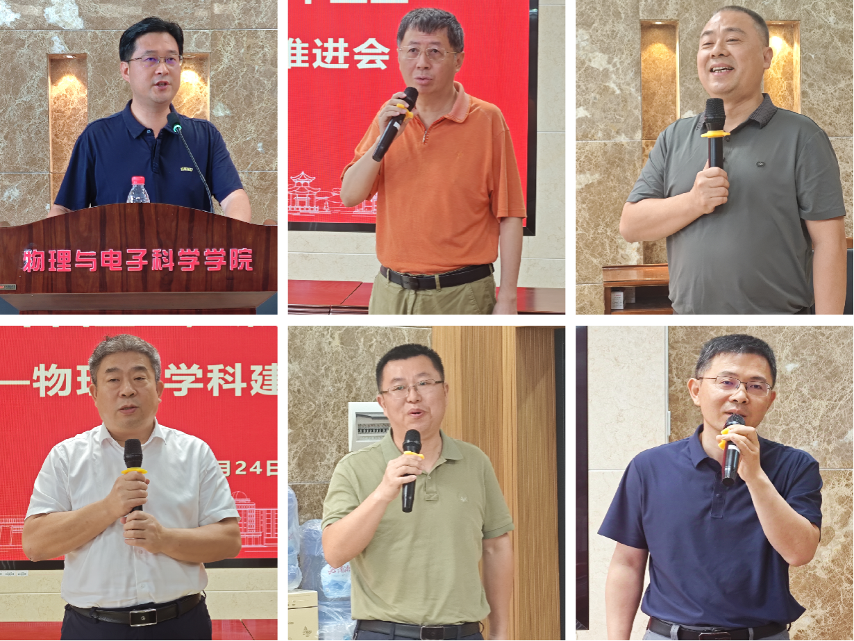 各职能部门领导分别发言,为学科建设提供了具体支持和指导。发展规划与学科建设处处长孙岳兵详细介绍了第六轮学科评估评价指标体系的最新形势和动态,为学科建设指明了努力的方向,他希望学科抓紧最后半年时间努力破解问题短板,为学科迈向更高水平冲刺;教务处处长银海强强调本科生的培养在学科评估中的重要支撑作用,他表示教务处将全力支持物理学学科的建设;财务处处长匡尹俊表示将一如既往做好服务工作,为物理学学科高质量发展添砖加瓦;科技处副处长李云龙鼓励教师多报大项目、大奖励、多做成果转化,祝愿教师取得更多科研成果,助力学科发展;资产与实验室管理处副处长罗万才为学院取得的成绩表示欣喜,作为条件保障部门,资产与实验室管理处将全力做好服务工作;研究生院副院长邹永星承诺将努力做好研究生培养工作,一如既往地支持学院学科发展。