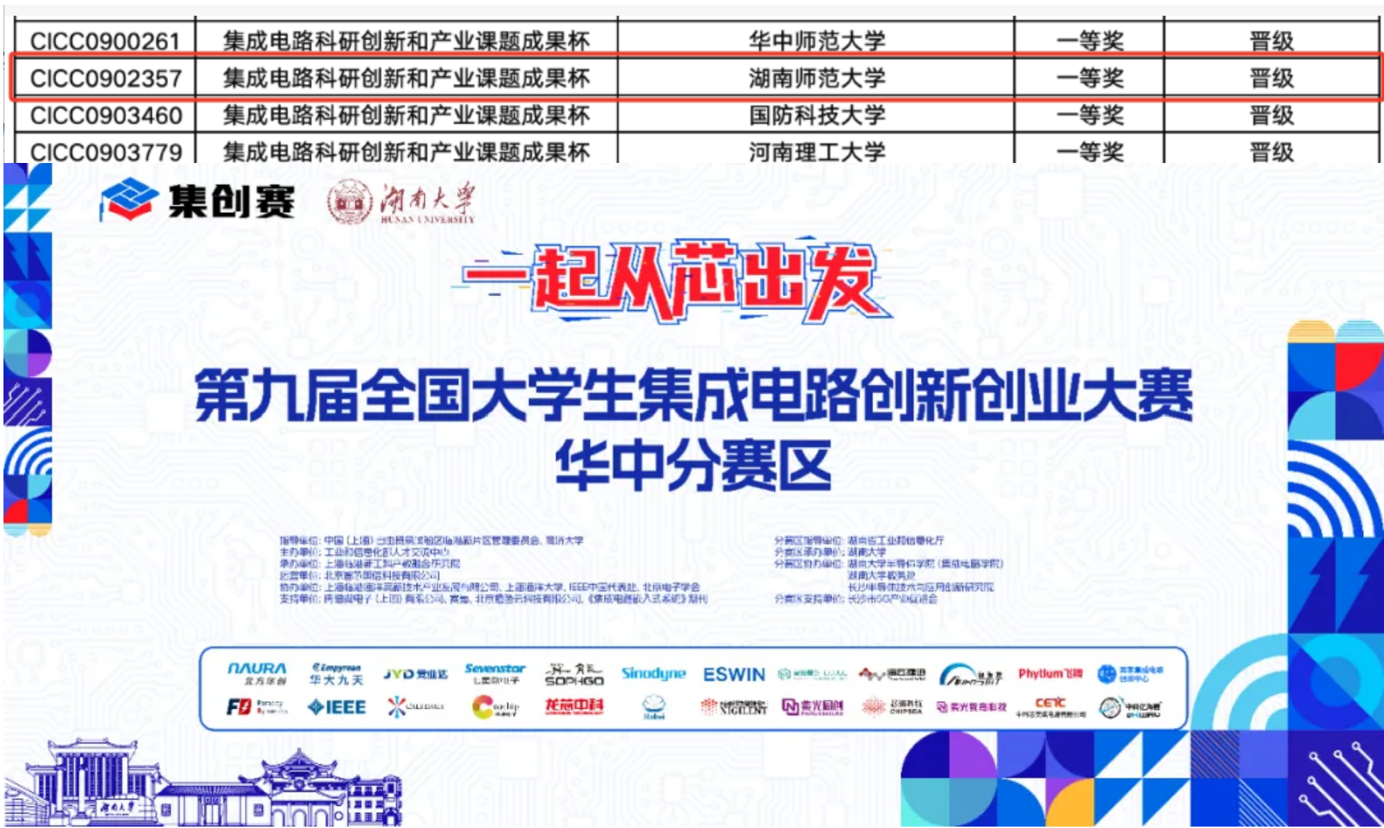 7月13日,第九届大学生集成电路创新创业大赛华中分赛区决赛在湖南大学成功举办。由我院金湘亮教授指导的刘煜杰、曹智祥、杨宇轩三位研究生同学完成的项目《抗辐射静电防护人工智能新模型与新器件研究》荣获华中赛区一等奖并顺利进入全国决赛。