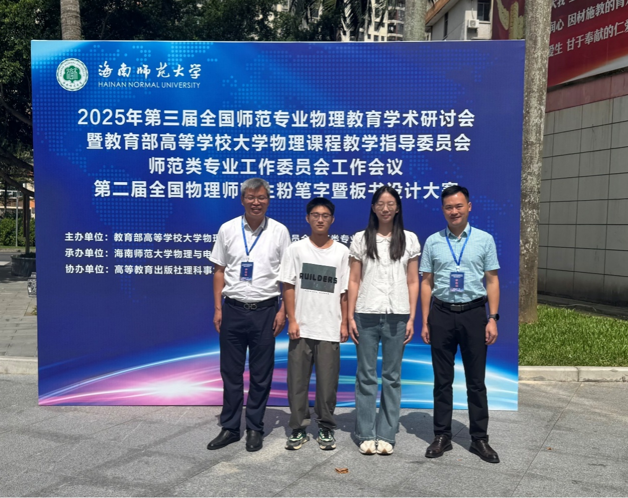 2025年10月17日至21日,第三届全国师范专业物理教育学术研讨会暨教育部高等学校大学物理课程教学指导委员会师范类专业工作委员会会议在海南师范大学顺利召开。同期还举办了第二届物理师范生粉笔字暨板书设计大赛。会议现场,既有高水平的学术报告,也有考验师范生基本技能的板书大赛。