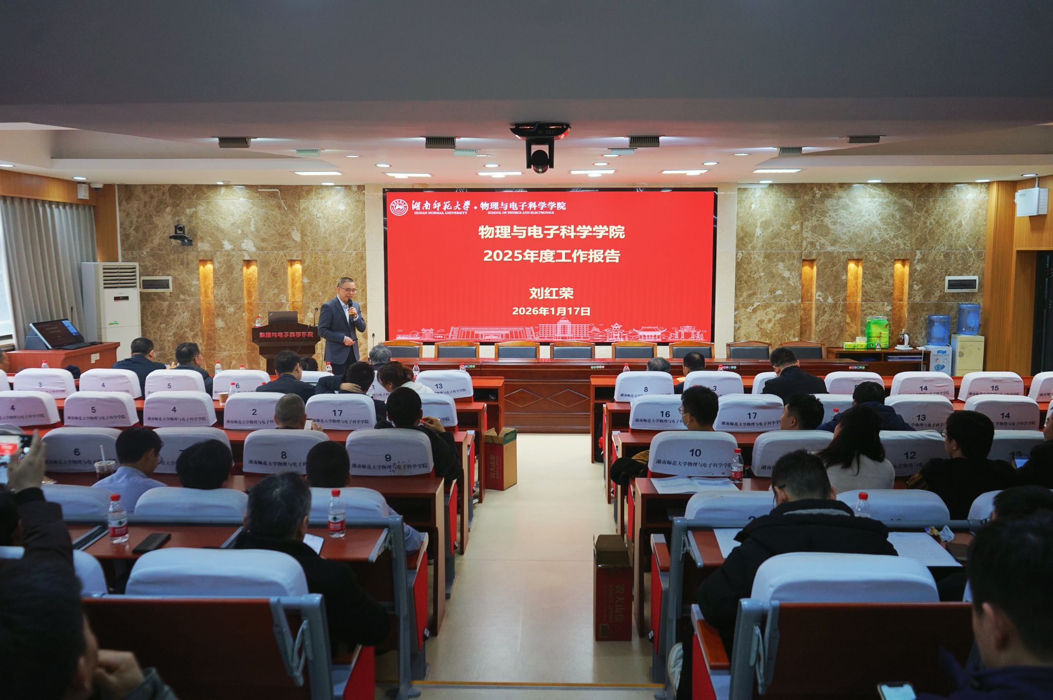 同时,会议对2026年学院重点工作进行了部署,刘红荣强调要持续聚焦国家基金申报、教学成果奖培育、第六轮学科评估、学生就业、科技成果转化等关键任务。他希望全体教职工在新的一年要继续做到三个坚持:坚持“学生中心”,将育人工作落到实处;坚持大力发展实验与应用科学,积极对接国家与区域重大战略需求;坚持着力支持青年教师成长,使其成为教学、科研与服务的中坚力量。