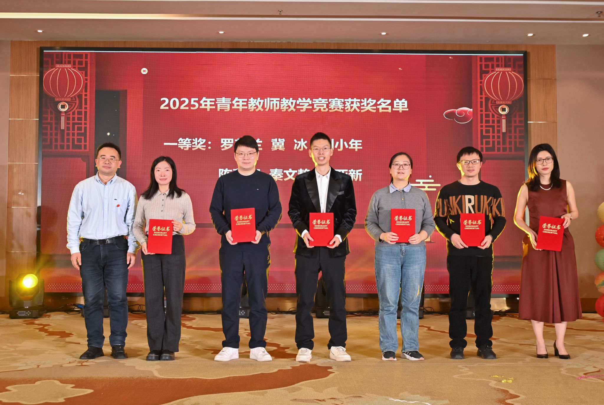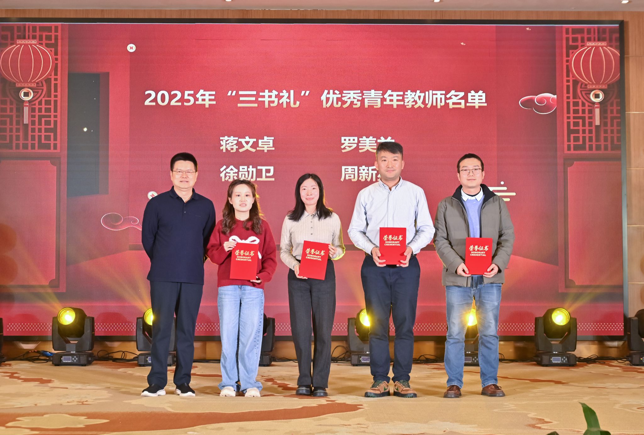 “三书礼”颁奖环节庄重而热烈。匡乐满副校长、潘启沅副院长、苏文华董事长为获评“三书礼”青年教师教学竞赛一等奖、青年教师教学竞赛新秀一等奖、优秀青年教师奖的13位老师颁奖,罗美兰、邓泽辉、蒋文卓等老师依次上台领奖。这场颁奖既是对教师教学匠心的肯定,也彰显了校企携手助力教育发展、共促青年教师成长的深厚情谊,现场掌声经久不息。