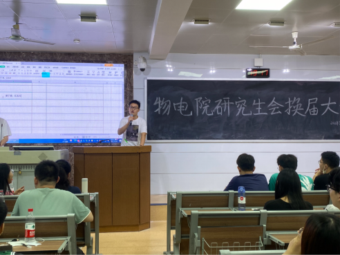 (供稿人温文玉)2021年9月24日晚,物电院研究生会换届大会在理学院109教室召开。全体2021级研究生和2020级研究生会成员参加了此次换届大会,会议由研究生会主席马前春主持。