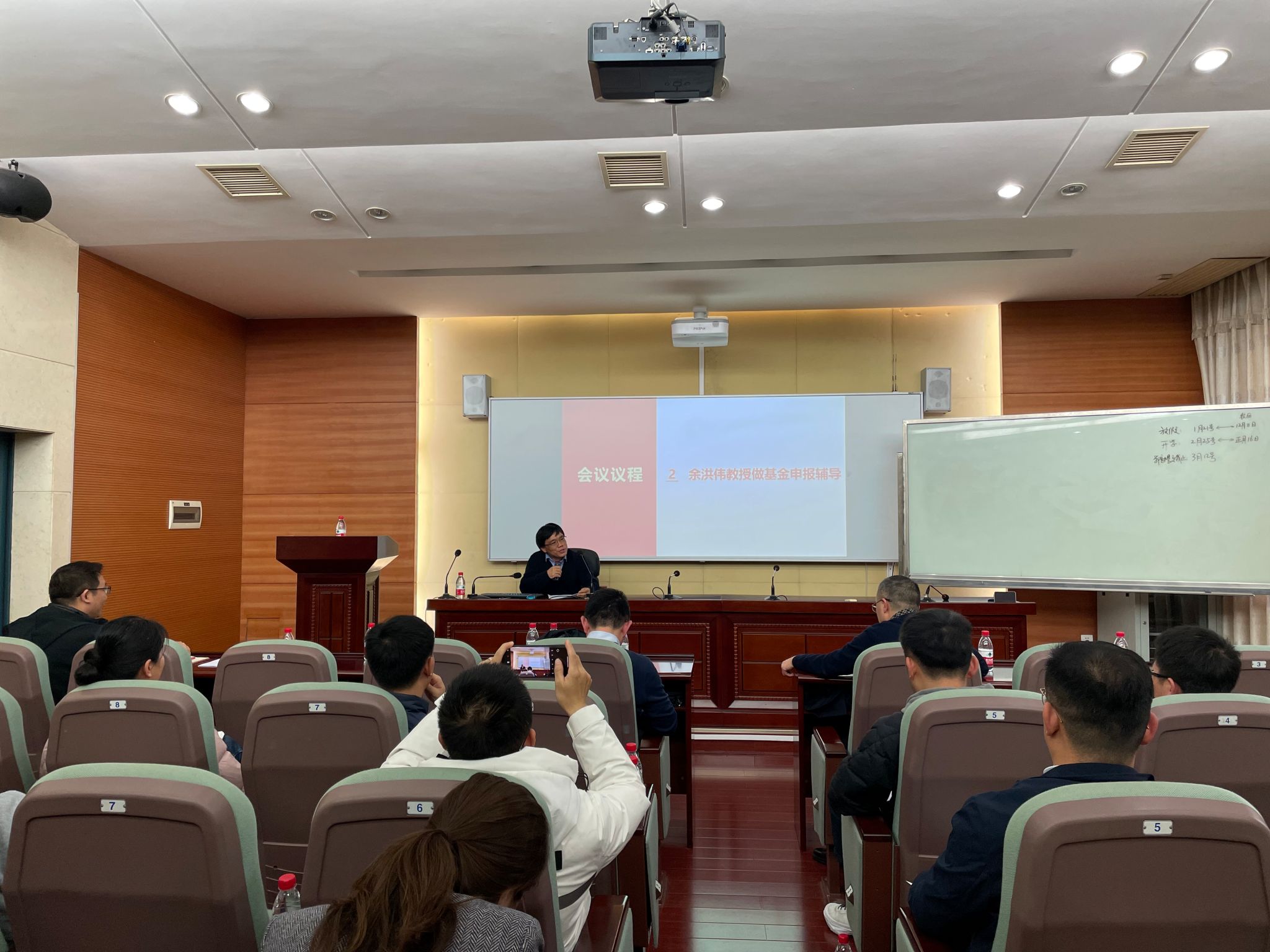 余洪伟教授做了基金申报辅导报告,余教授项目申报经验非常丰富,他从研究领域、中文摘要、项目可行性评估、项目的特色和创新、研究计划及预期成果等基金申报书中的几个关键部分逐一进行指导,在座老师们一边聆听一边仔细做笔记,收获颇多。